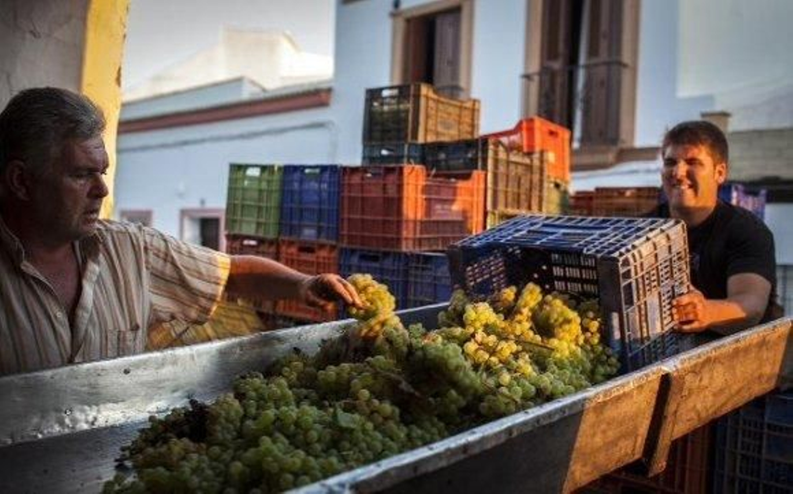 El calor de septiembre se pega aún a la ropa cuando José María Gallego-Góngora, séptima generación de una familia de viticultores asentada en Villanueva del Ariscal hace ahora 331 años, espera a la visita acompañado por su hijo Ignacio para iniciar el recorrido por la bodega. Nada más dejar atrás el albero del patio de la Hacienda Pata de Hierro los olores de la vendimia desbordan los sentidos y viajar hacia atrás resulta más fácil. La primera imagen es la de la bodega del 126, por el número de botas cargadas ahora de vino blanco. Cada una tiene nombre y también alma, envuelta en roble americano y que hace que los vinos que allí se producen sean únicos. Y, en este caso, por las características del clima y del terreno, de excelente calidad.
