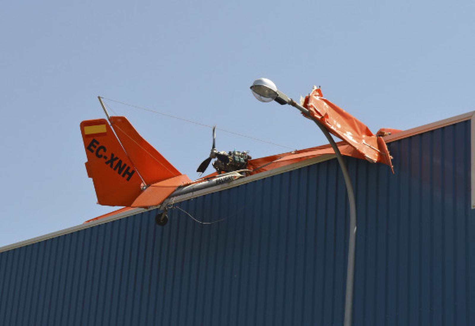La aeronave ha caído sobre el techo de la citada nave y los bomberos de los parques de Gerena y Central han tenido que rescatar a sus ocupantes con escalas. Uno de los ocupantes ha resultado ileso, mientras que el otro ha sido trasladado en ambulancia al hospital Virgen del Rocío de Sevilla.