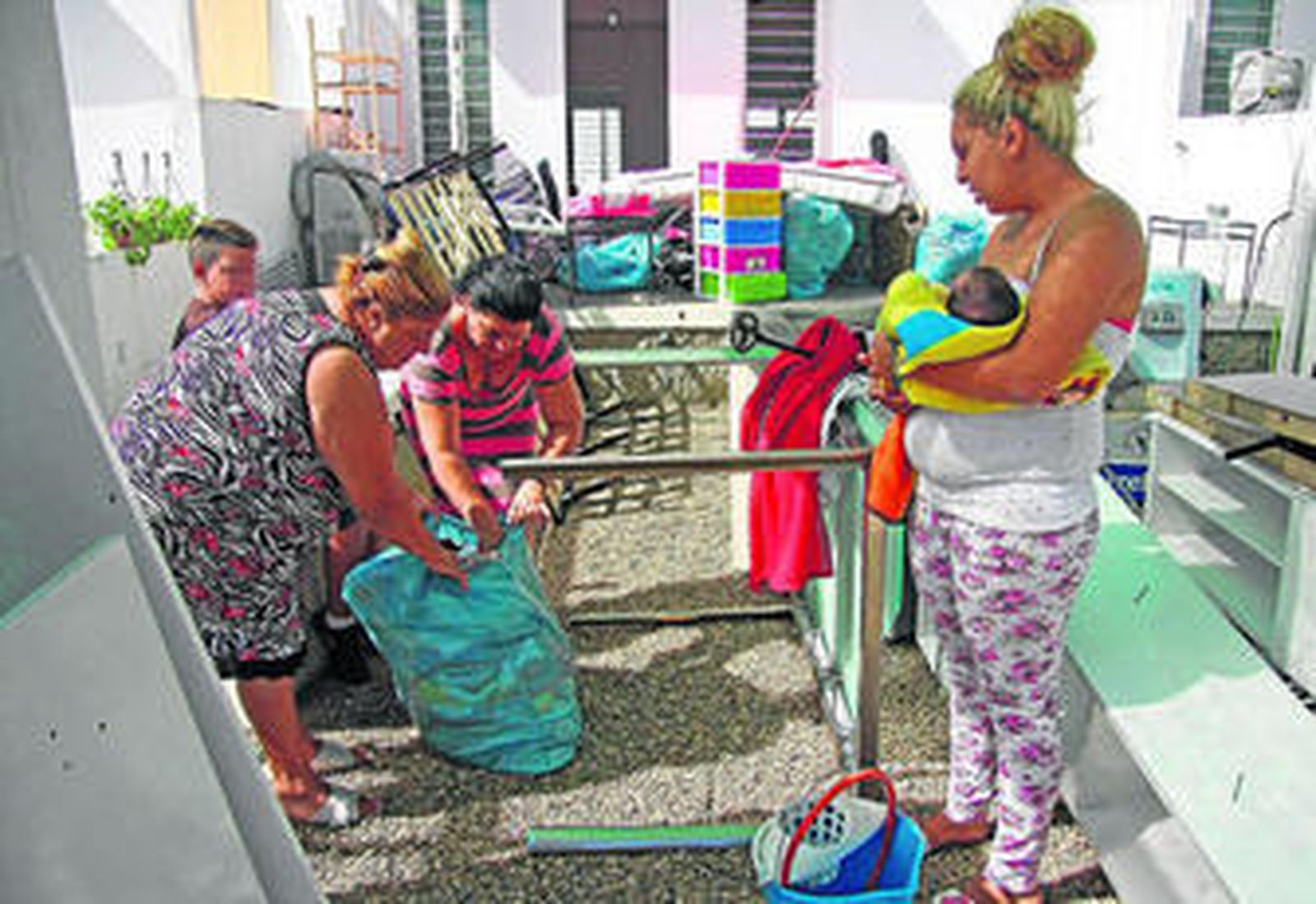 En la calle de atrás, Felisa Jiménez y su hija Fabiola esperaban con mesas, sillas, colchones enrollados a que las recogieran. Ésta tenía a su hija, de doce días, en brazos. Su primer hogar ha sido esa casa ocupada. También proceden de Salamanca, han pasado por las Tres Mil Viviendas -se fueron porque había "mucha droga", decía Felisa-. "Estuvimos dos meses en el puente, hasta que no pudimos con el calor". Ayer tocaba volver. "Sabemos que no es nuestro, pero esto estaba sucio, lleno de matojos y de bichos. Lo hemos limpiado y estamos dispuestos a pagar cien euritos. Pero nos piden avales, nómina y no tenemos", relataban, "peor es que se robe todo esto", señalando la verja de hierro que franquea el patio delantero. Se ganan la vida en los mercadillos, en la recogida de melocotones, la fresa, la chatarra, hacen rifas, venden pañuelos o papel higiénico por casas. "¿Tú nos puedes ayudar?, preguntaban".