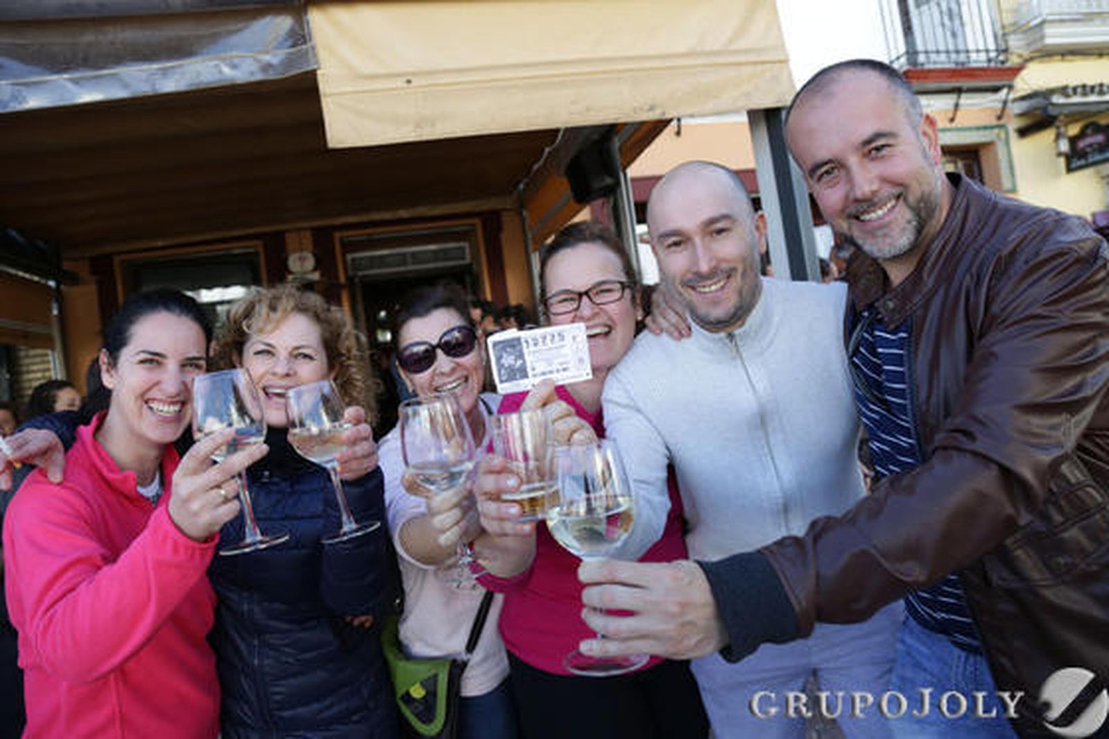 La calle Esparteros fue un hervidero de emociones durante toda la mañana. Abrazos y lágrimas se mezclaron con villancicos flamencos que recordaron las fiestas que están por venir. Entre tanto gentío, el azar quiso que Nazaret Gordillo eligiera el pasado sábado el número correcto. Esperó hasta el último día para acercarse por la oficina de lotería y adquirir un décimo del 12775. Situación similar vivió Miguel Franco. Trabajador de la recogida de la aceituna de mesa, compró el último décimo del segundo premio. "Guárdalo como oro en paño", decían algunos de sus compañeros de la cuadrilla de los tomates, a la que pertenece. Su felicidad le llevó a enseñar durante buena parte de la jornada el boleto original. Como él, Diego Jiménez, ahora en paro, fue agraciado con el premio. La lluvia de millones cayó como agua de mayo también para Manuela Amaya. Sus tres hijos de seis, cinco y un año tendrán los mejores Reyes posibles. Amaya, que siempre había comprado la lotería de su colegio, se decantó este año por el número de uno de los bares cercanos a la oficina de lotería.