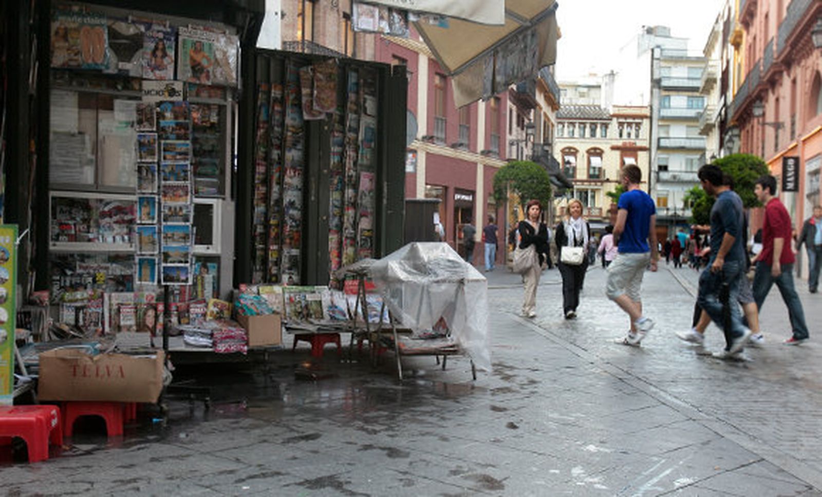 Son tres los quioscos que cada año se retiran del entorno de la carrera oficial para poder colocar las sillas: el de Curro, situado en la Campana; el de la confluencia de Sierpes con Rioja, y el que se encuentra al final de Sierpes, frente al Laredo. Normalmente, se retiraban de sus ubicaciones el Jueves de Pasión y se volvían a colocar el Jueves de Pascua, pero la deuda que arrastraba la Gerencia de Urbanismo con la empresa Clear Channel, la encarga de moverlos, hizo que el año pasado estuvieran durante un mes y medio fuera de la ubicación por la que pagan sus tasas e impuestos.