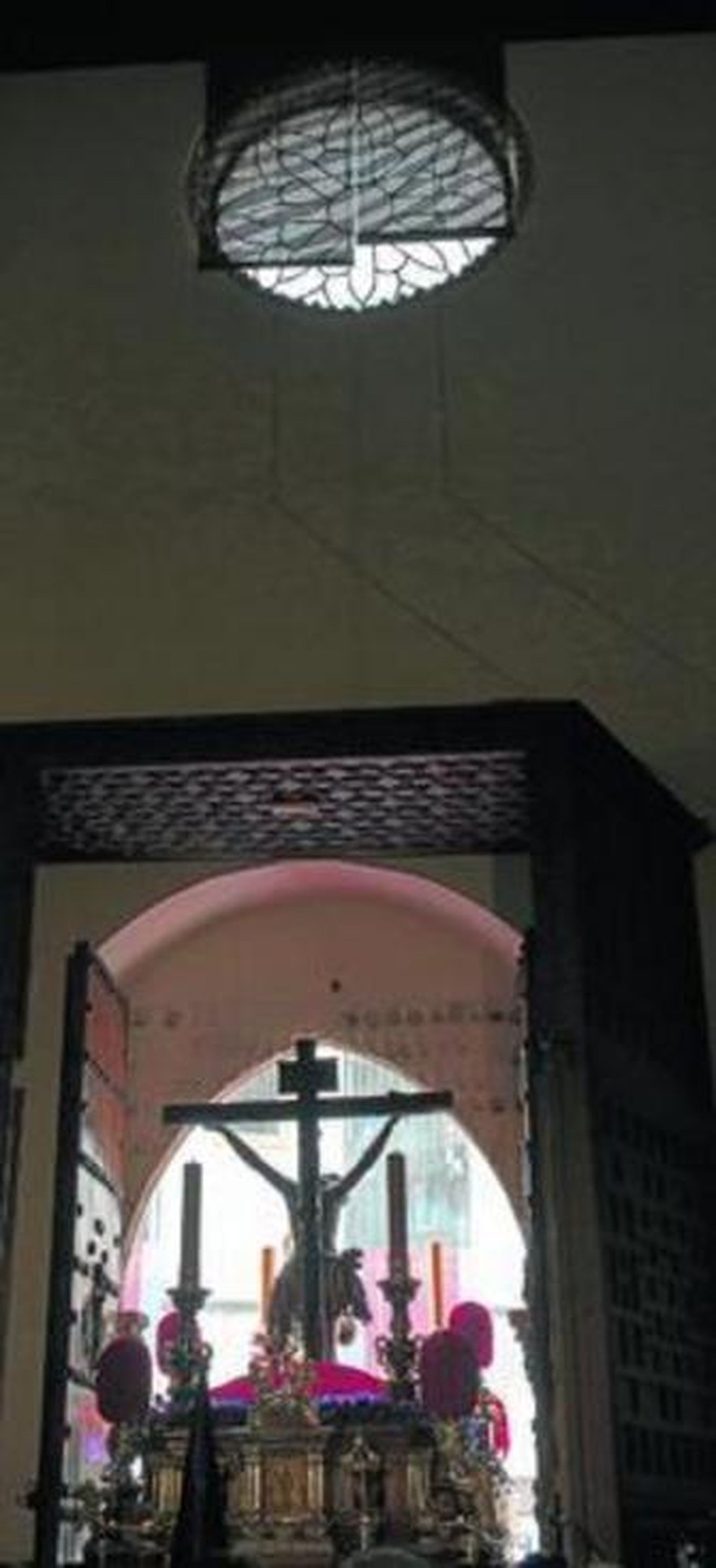 La ojiva de San Julián es el arco triunfal por el que salen el Cristo de la Buena Muerte y la Magdalena arrodillada. Las imágenes talladas por Castillo Lastrucci para reinventar a las antiguas que el odio cainita redujo a cenizas. Cristo tantas veces muerto, tantas veces ultrajado, tantas veces renegado… Y, sin embargo, ahí lo tenemos, entre cuatro hachones.