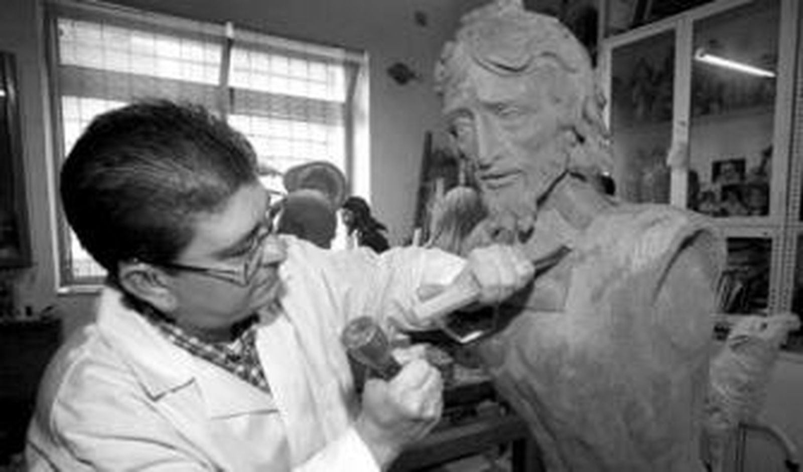 Hijo de un tallista, José Antonio Bravo lleva casi 30 años en la calle Antonio Susillo, primero en una casa de vecinos donde compartía taller con otros tres escultores y un patio que le permitía utilizar resina de poliester; ahora en la esquina de la calle con Peral, en una estancia que denota el vértigo de los encargos y el sosiego de su realización.