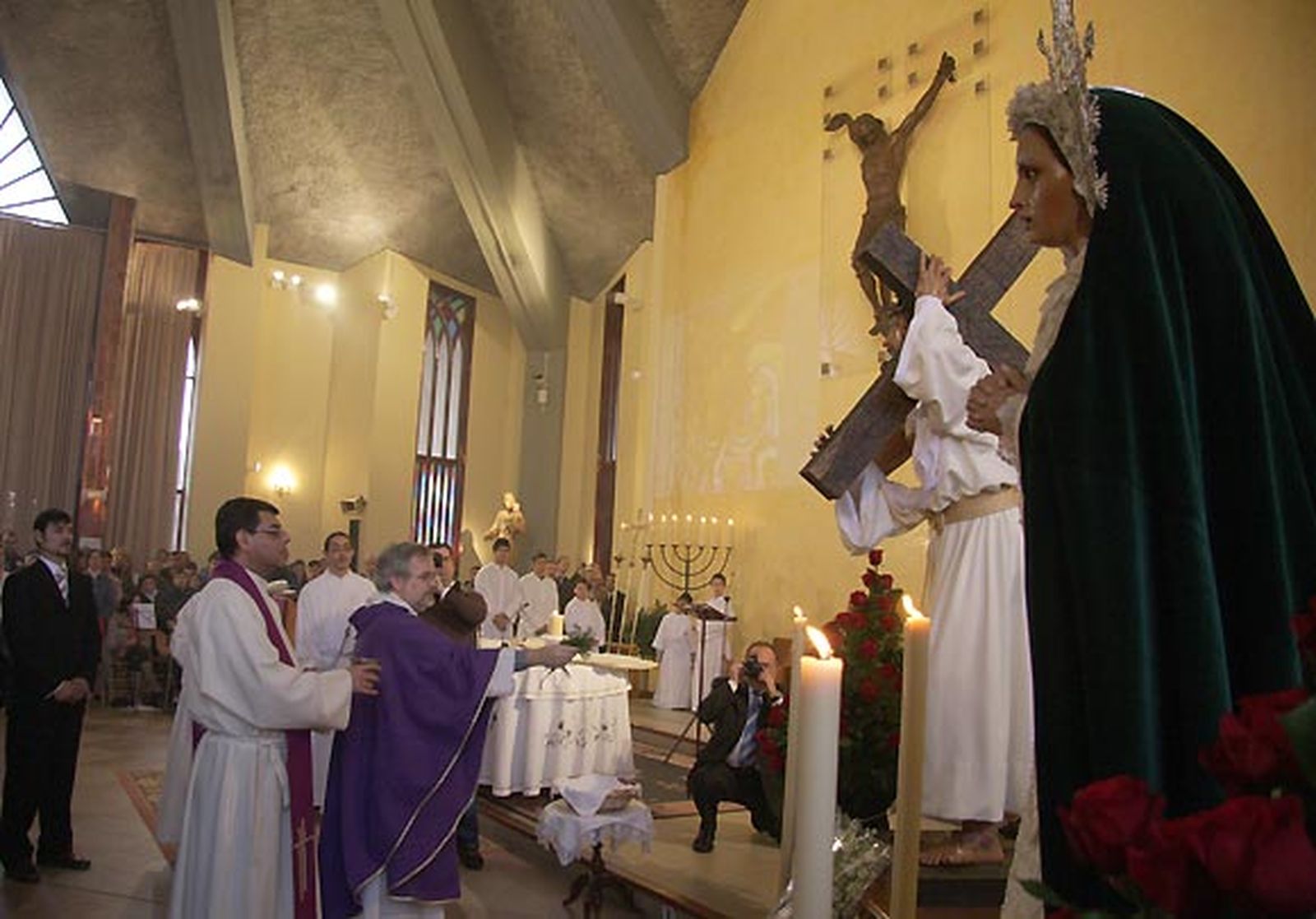 Bajo un cielo de gris hormigón el pastor de almas bendice la madera. Coros con guitarras y otros instrumentos musicales sin clasificación entonan cánticos con ecos de campamentos parroquiales. Letras pueriles para este domingo de Cuaresma donde el morado anuncia tiempos de preparación. Dura penitencia para unos vecinos que suben cada día al Gólgota de su barrio.