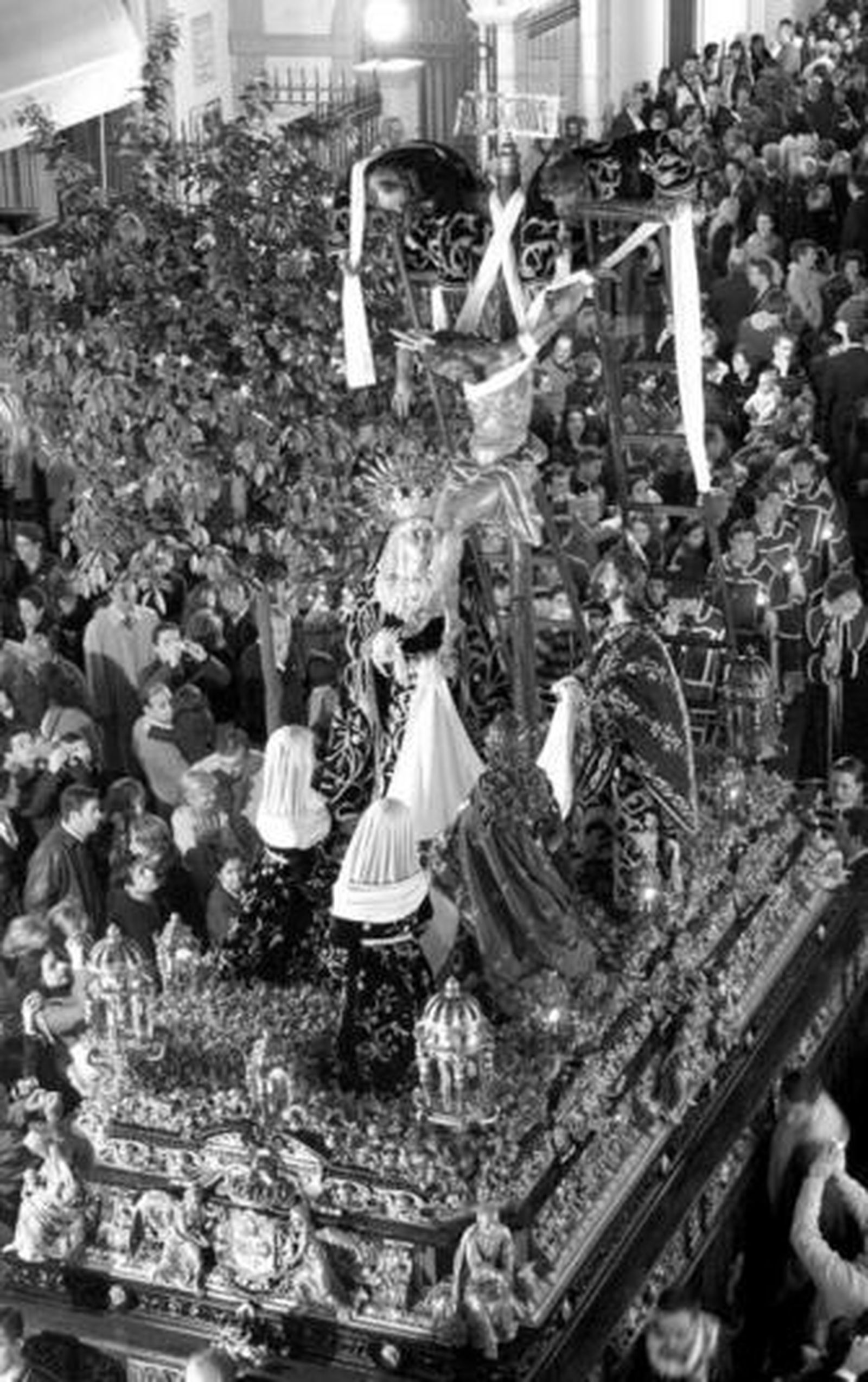 Esplendidamente vestida la Virgen de la Merced, de Pasión, con cuyo paso se recrea el público contemplando los detalles de la orfebrería de los respiraderos: el angelito con las gafas, el querubín con la pluma, el pescador de una bota en un farol, etcétera. Un obra con el inconfundible sello de los hermanos Delgado. En Triana había runrún con las flores escogidas para el paso de la Esperanza: calas, jazmines y varas de color rosa. Ya hay alpiste en cantidad para las tertulias.