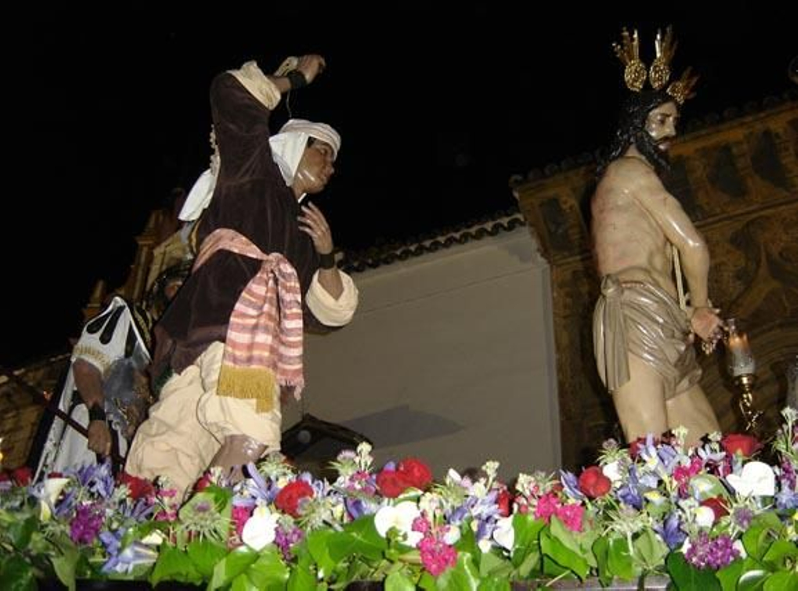 Sede: Iglesia de la Asunción. Salida: 20:30.. Entrada: 01:30. Dos pasos: Cristo amarrado a la columna y Virgen de la Cruz. Las dos son de Castillo Lastrucci.