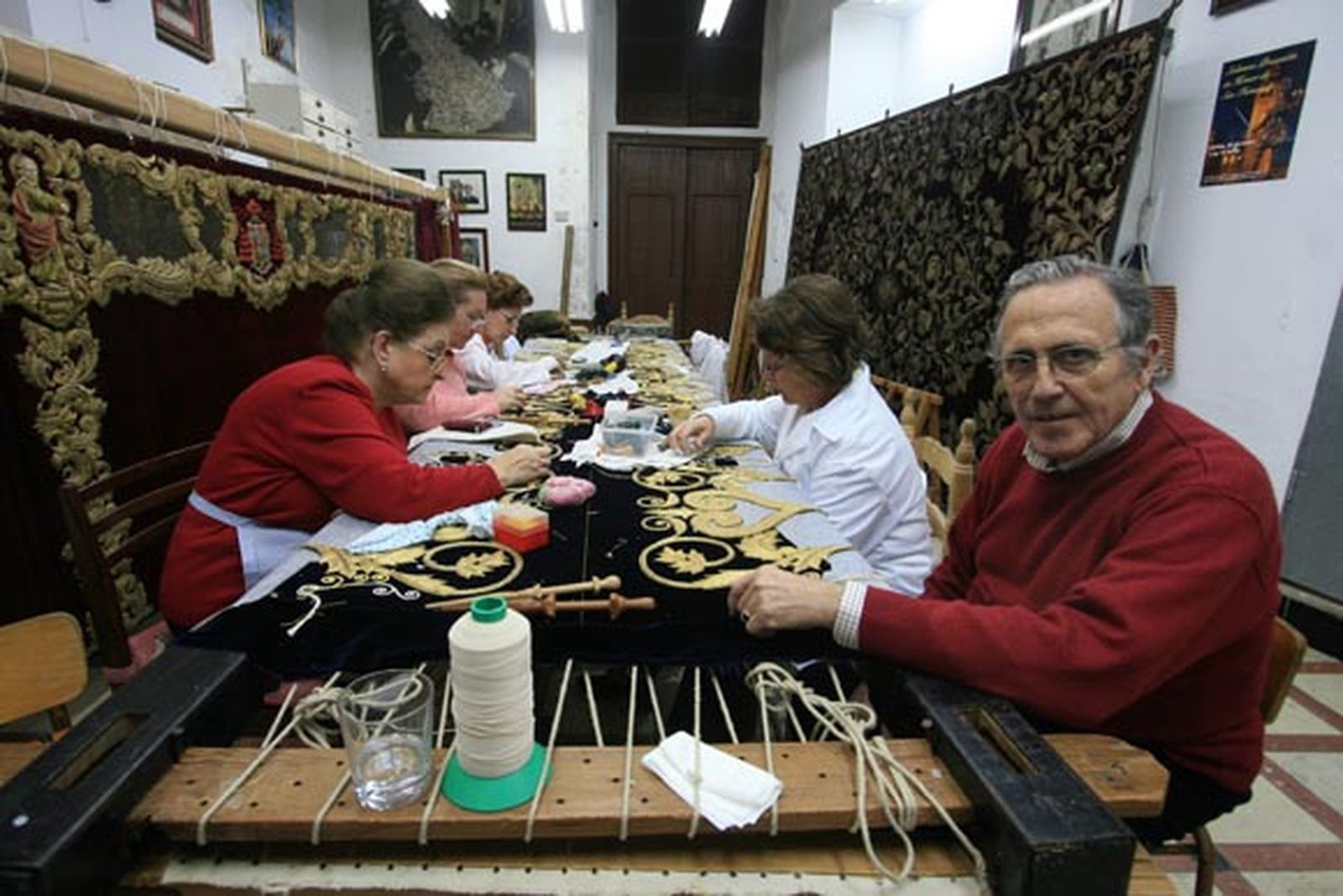 Al hablar de bordados en la Semana Santa es inevitable acordarse de la familia Elena Caro y de uno de los más prolíficos talleres de la artesanía cofrade. El actual responsable es José Manuel Elena Martín, un químico de carrera, que tomó el relevo en la dirección en 1985 tras la muerte de la excepcional Esperanza Elena Caro, aunque desde 1961 ya trabajaba codo con codo con la bordadora. La primera obra que sale del taller cuando toma las riendas es el palio de la Virgen de Guadalupe, “una obra a la que le tengo un especial cariño porque fue lo primero que se hizo cuando murió Esperanza” comenta.
