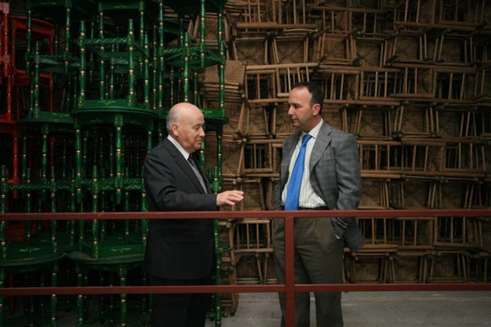 Quidiello se dedica a surtir de sillas a la Carrera Oficial desde hace más de ochenta años. Acaban de cumplir un siglo de vida y Juan José es la tercera generación de la familia que está al frente de la empresa. Vive en la trianera calle San Jacinto, tiene 45 años, está casado y tiene tres hijas. Este año serán unas dieciséis mil sillas las que saldrán del almacén para que los abonados puedan ver cómodamente los desfiles procesionales. El germen lo puso su abuelo en un caserón de la calle Castilla, dónde, entre otras cosas, “se dedicaba a fabricar sillas para alquilarlas”. Si antiguamente la mayoría de las sillas que se alquilaban eran de enea -prácticamente sólo quedan ya en los palcos- en la actualidad se han sustituido por las de tijera completamente de madera, “más del 85 por ciento de las sillas son de tijera, la enea se está perdiendo, aunque es una silla preciosa, pero es bastante más cara para transportar e incómoda de guardar”, indica.