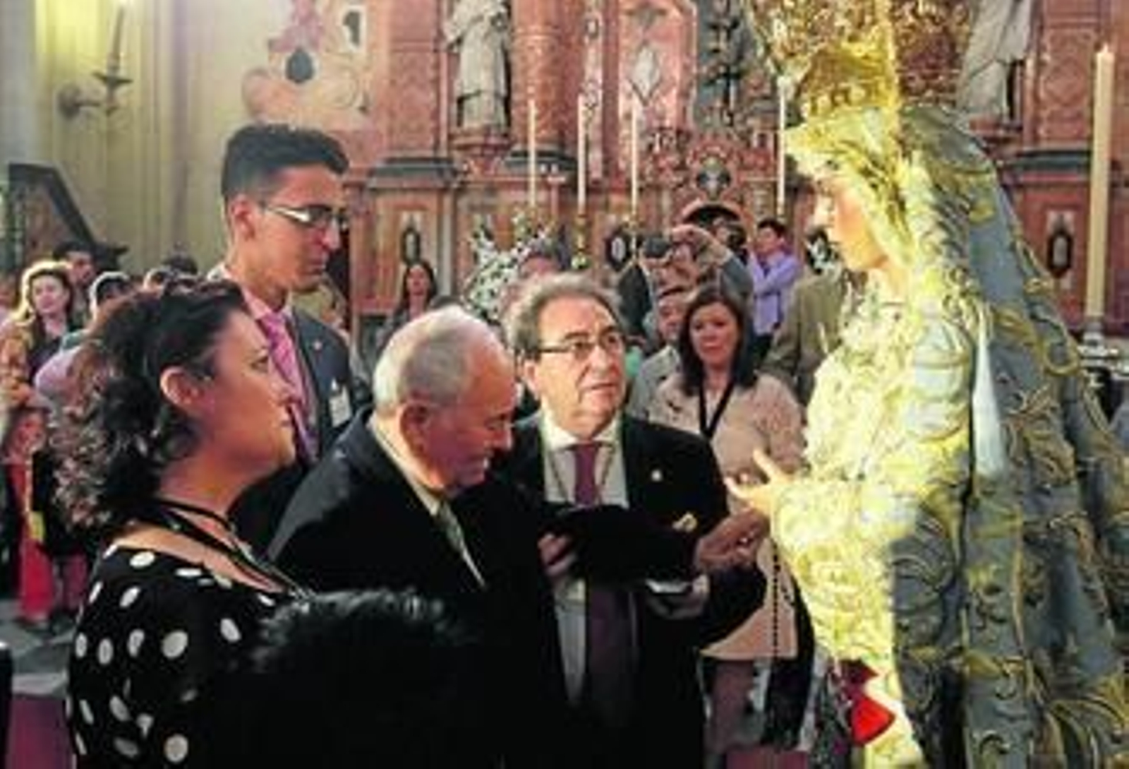 La cola de la espera para acercarse a la Señora se convierte en doble fila. Nace en el Archivo de Indias, llega a la Puerta del Perdón y vuelve a girar para buscar la entrada al Sagrario. La tarde es agradable y hay turistas que preguntan a qué se debe tanto gentío. El consiliario macareno prosigue su charla mientras los voluntarios entran y salen. Hoy han venido 22, pero en total son 150. Están coordinados por Manuel Alejandro López y proceden de diversas áreas de la hermandad: armaos, costaleros, diputados de la cofradía, juventud y hermanos en general. Intervienen en este programa y en todos los que pone en marcha la corporación como son el de inmigración, becas, salud y acompañamiento a mayores. Este último es muy similar al que llevan a cabo varias universidades, mediante el cual un joven logra un hogar sin gasto alguno a cambio de atender y acompañar a una persona mayor. Ahora, además, se pretende que a los más longevos de la hermandad no sólo se les convoque para los actos y cultos, sino que con ellos también se desarrollen otras actividades culturales.