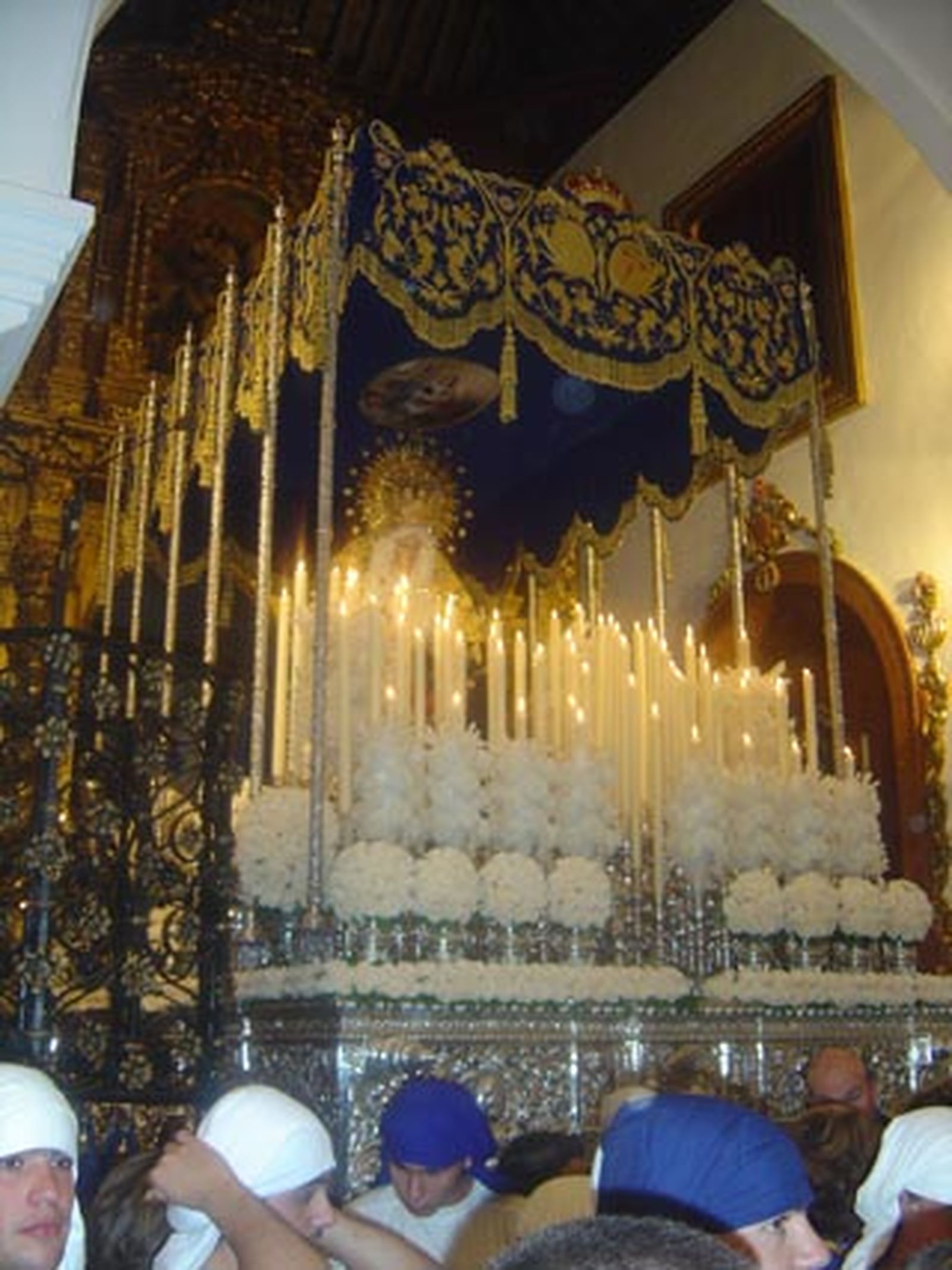Túnica: Blanca de capa, con antifaz de terciopelo azul. Nazarenos: Unos 450. Hermano mayor: Francisco José Fernández Quintero. Capataces: Antonio Ramón Gil Fernández, Francisco Antonio Herrera Rojas y Pedro Vaquerizo Rodriguez. Música: Banda de cornetas y tambores Cristo de la Vera-Cruz, tras el Cristo. Filarmónica de Pilas, tras la Virgen.