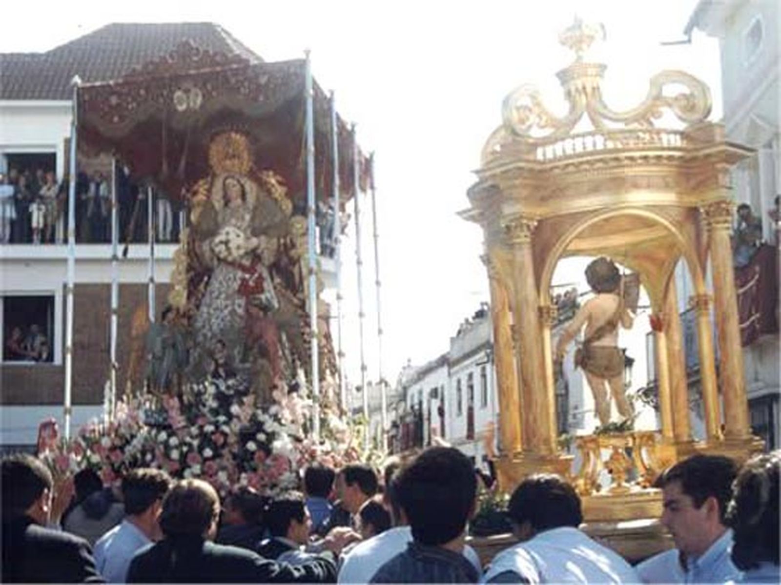 El Domingo de Pascua se celebran en Pilas las Carreritas, un abrazo simbólico entre el Niño del Dulce Nombre de Jesús y la patrona de la localidad, la Virgen de Belén.