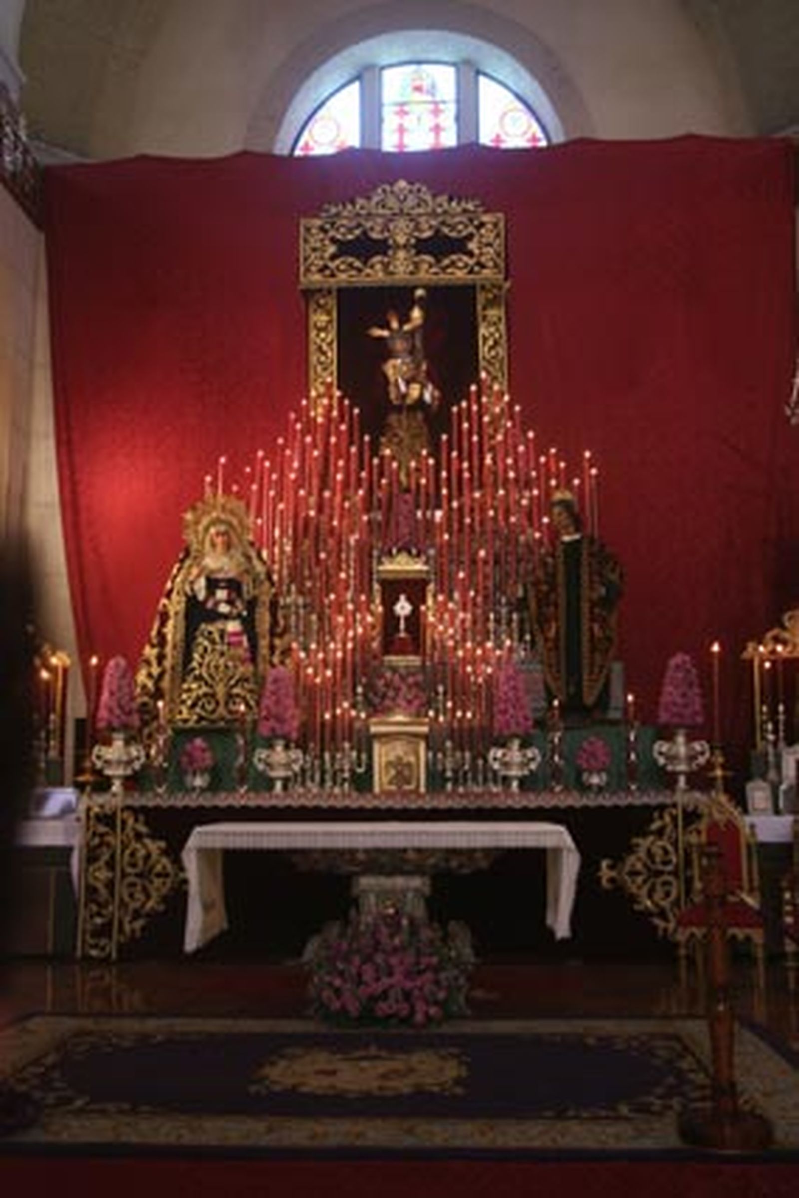Poco a poco van llegando hermanos y devotos. La Virgen de las Angustias acompaña al Cristo y a San Juan.