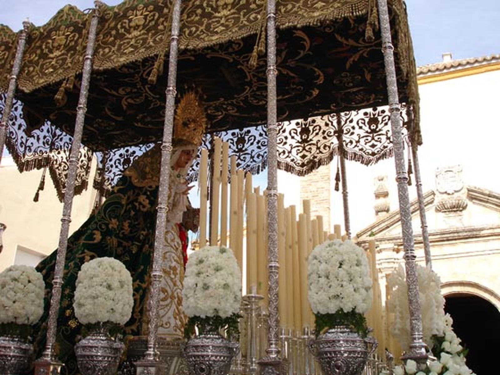 Túnicas: blancas de capa, con antifaz, botonadura y bocamanga negras. Nazarenos: 200. Hermano mayor: Rafael Prados Borrego. Capataces: Francisco Rebollo Serrano y José Manuel Paris Pinto. Música: Agrupación Jesús Nazareno (Palma del Condado) y la Banda de La Roda de Andalucía.