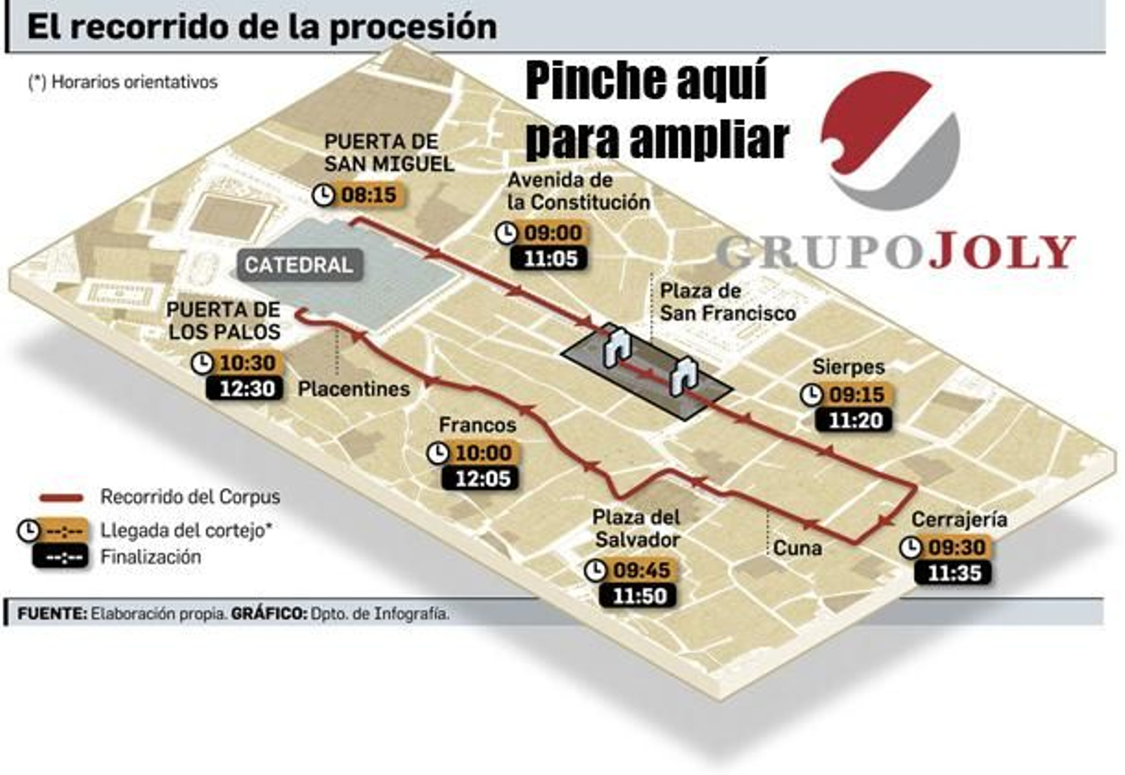 La empresa que se encarga del montaje de las sillas por adjudicación del Consejo de Cofradías instaló para la ocasión más de 5.000 asientos en todo el recorrido. El precio de las localidades se ha equiparado este año. Todas las parcelas de sillas costaron ocho euros. Durante este jueves de Corpus se pudieron adquirir directamente en las distintas parcelas por donde discurre la procesión.