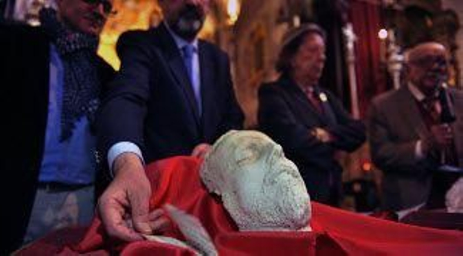 Enriqueta Vila entregó este martes a la hermandad la mascarilla mortuoria realizada al escultor tras su muerte.