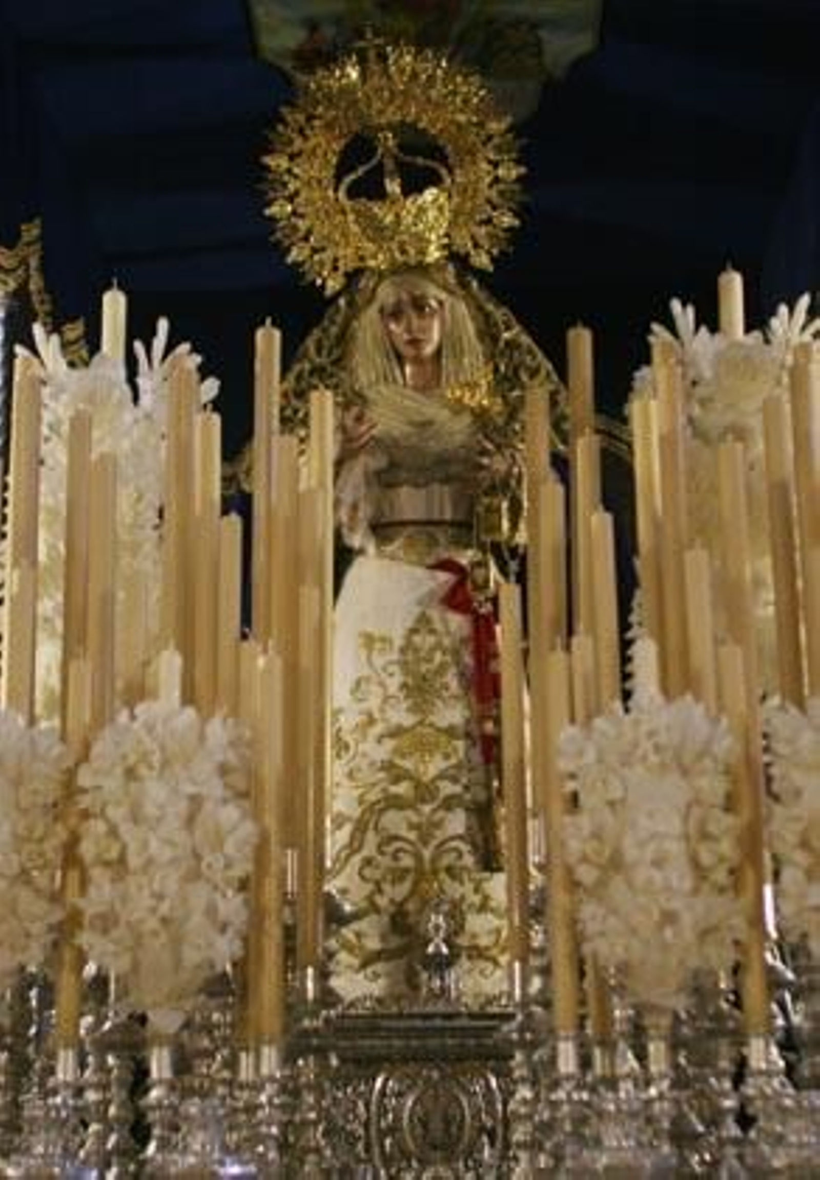 La Virgen del Carmen Doloroso, gran estreno de la Semana Santa de 2009, ya se encuentra entronizada en su paso de palio para la estación de penitencia que efectuará a la Catedral el próximo Miércoles Santo.