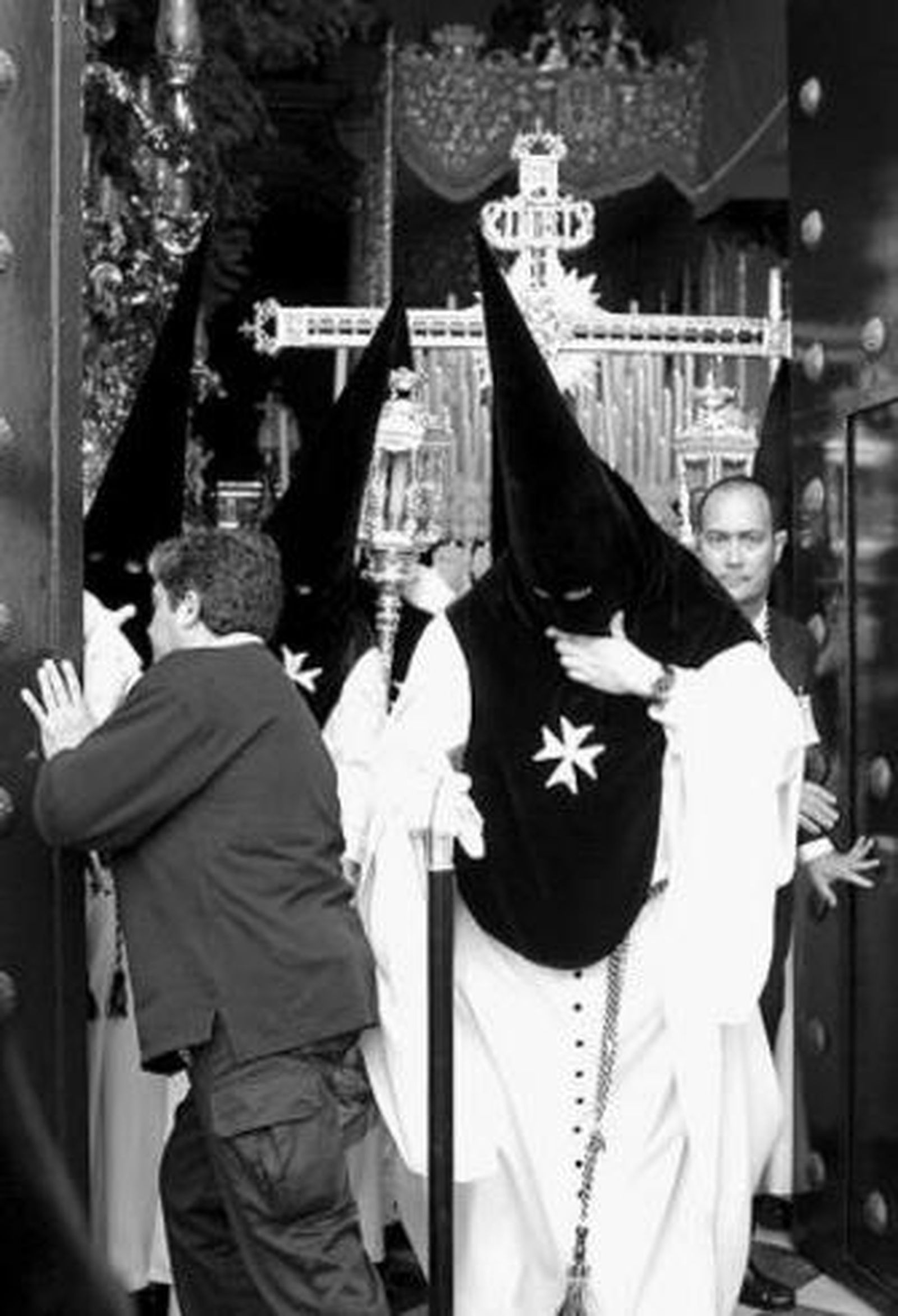 La Semana Santa bascula hacia puntos diferentes por día. Ayer la geografía cofradiera dejaba a mano el inicio de la calle Feria a los centenares de personas que sufrieron la decepción en los Terceros y la Plaza de Carmen Benítez. El lleno en la Plaza de los Carros era absoluto. El tono predominante era el azul marino de las chaquetas, como corresponde al Jueves Santo tarde. El fresco de una tarde que había comenzado con una tromba de agua generalizada en toda la ciudad redujo el número de mantillas. "Veremos a ver", decía una señora a su marido extendiendo la palma de la mano y señalando al cielo. Porque en el preciso momento en que la corporación de la calle Feria decidía romper un maleficio de casi 48 horas sin cofradías comenzaban a caer algunas gotas sobre el entorno de la capilla del Rosario.