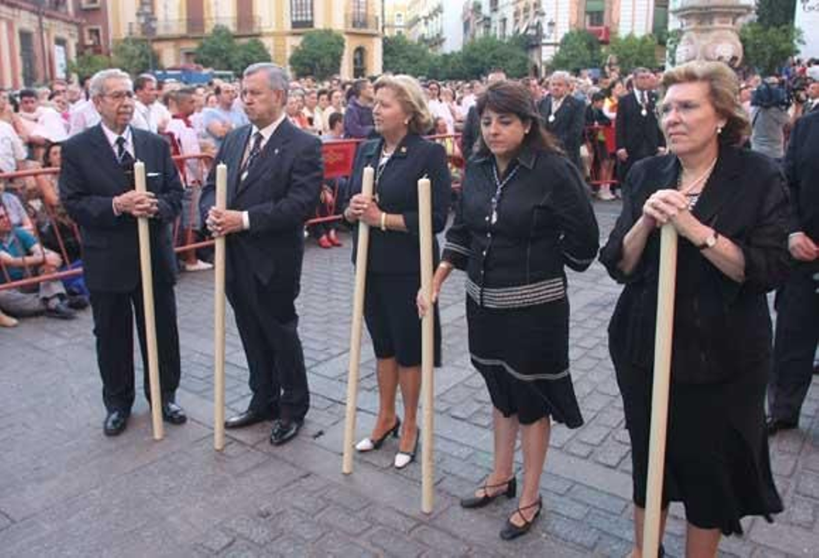 Después de la Banda Sinfónica Municipal, que abre el cortejo, se sitúan los niños carráncanos de la Sacramental del Sagrario. Tras ellos, la cruz patriarcal y dos ciriales. A continuación, los miembros de la Asociación de Fieles de Nuestra Señora de los Reyes y San Fernando, que preside María del Carmen Almagro e integran un máximo de 150 devotos con cirios: 75 hermanos y 75 hermanas. Esta asociación cuenta con cerca de 1.700 miembros y se fundó en los años cuarenta a instancias del cardenal Segura.