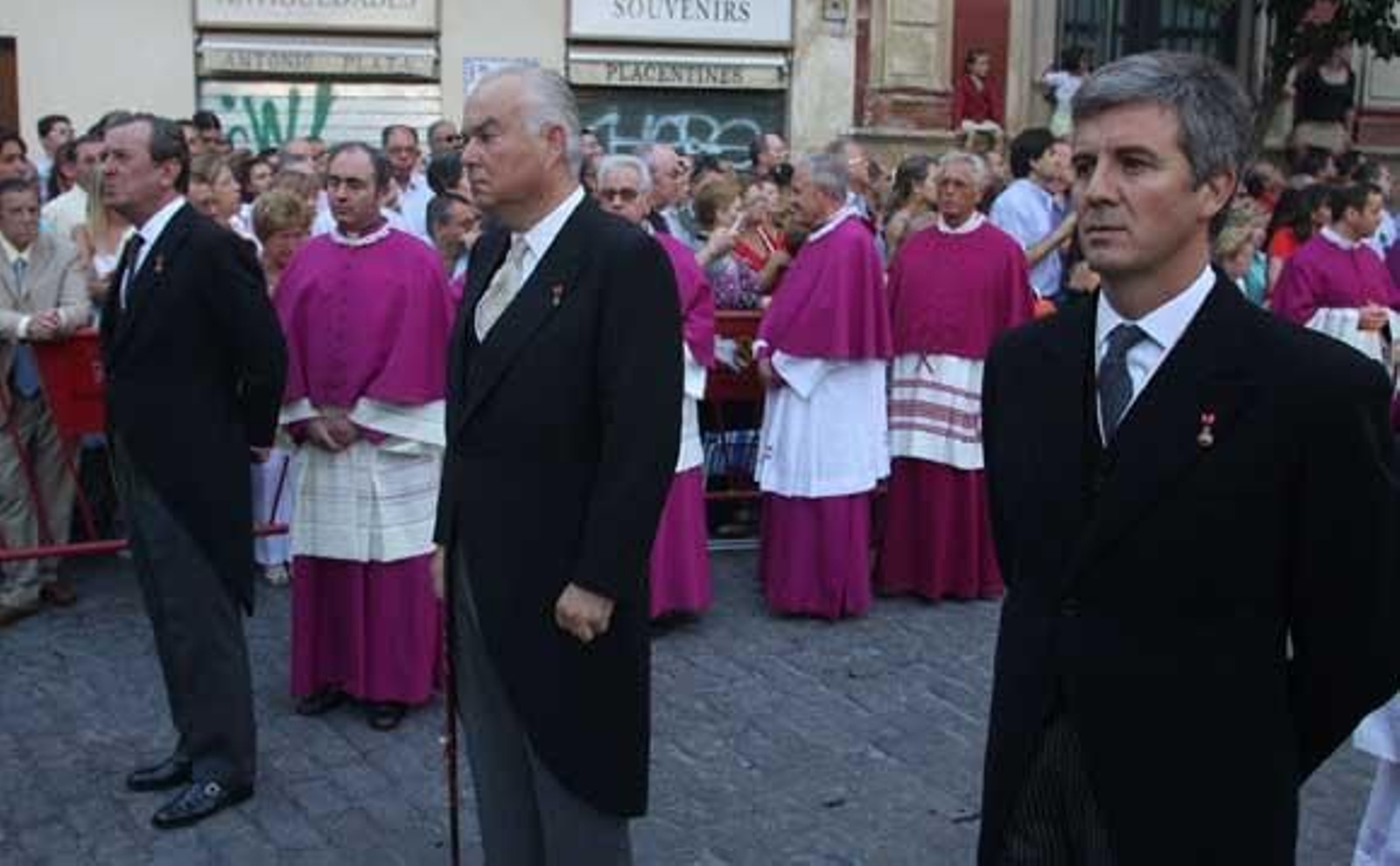 Inmediatamente después de la Archicofradía del Sagrario se sitúa la representación del clero secular, la coral y la representación del Cabildo Catedral, precedida por el pertiguero y formada por varias parejas de canónigos y presidida por el capellán mayor de San Fernando. Los capellanes reales se sitúan como manigueteros del paso. Tras el paso, la presidencia eclesiástica formada por el cardenal, monseñor Amigo, acompañado por el déan y vicario general, Francisco Ortiz, y por dos diáconos. A continuación, se sitúan los ministros de mitra, el Báculo y el Libro. Seguidamente, las autoridades invitadas y las corporaciones municipal y provincial, ambas de chaqué y bajo mazas. Los maceros de la municipal visten de carmesí y los de la provincial de verde. Asiste en este lugar del cortejo el subdelegado del Gobierno. Cierra una compañía de honores del Ejército con su escuadra de gastadores, bandera y música. Todas las autoridades cumplimentan al cardenal antes de abandonar la Catedral.