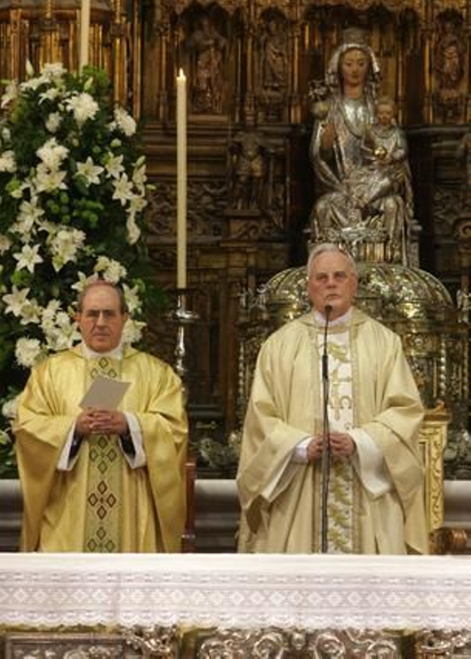 El mantenedor leyó los nombres de los cinco diáconos y ocho presbíteros que han hecho sus bodas de plata. Y de los catorce curas que alcanzaron los cincuenta años de ministerio sacerdotal. En los bancos de la izquierda de la Capilla Real, se sentaban las religiosas de la Casa Sacerdotal.