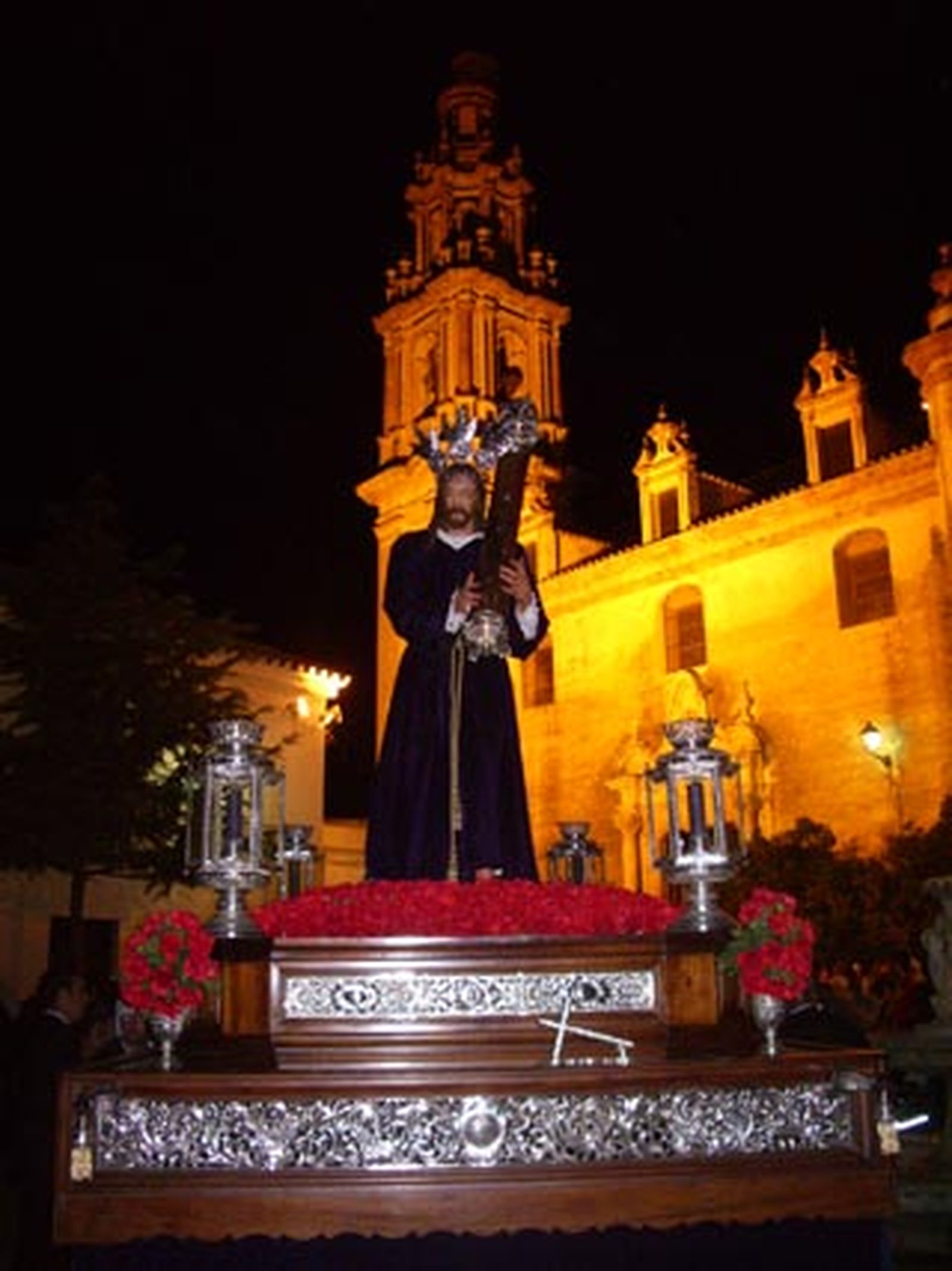 Sede: Iglesia de San Pedro Apóstol. Salida: 10:00. Entrada: 14:00. Dos pasos: Jesús Nazareno con la cruz a cuestas y Virgen de los Dolores y San Juan Evangelista. El Señor es anónimo de la escuela barroca sevillana (s. XVII) y la Virgen es del mismo siglo de autor desconocido.