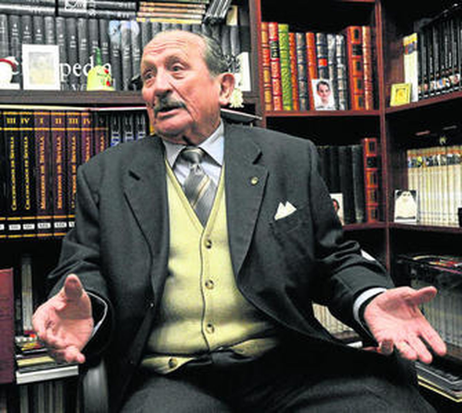 Lleva a gala haber hecho vida de hermandad durante 63 años, cuarenta de ellos como oficial de la junta. "Soy el último de Filipinas de los de mi generación". Vive cerca del Prado de San Sebastián. Su mejor refugio es un despacho jalonado por las fotografías de sus amados titulares. Mientras va señalando con el dedo, subraya con la palabra: "Verá usted que aquí no hay más que el Calvario. Sólo soy del Calvario. No necesito perchas para colgar las medallas, porque sólo soy de una cofradía". Ignora su verdadero número en la nómina de hermanos por la pérdida de documentación que provocaban esos archivos itinerantes de casa en casa del mayordomo de turno. Debe andar por los diez primeros, porque ha conocido los tiempos de una hermandad despoblada: "Éramos habitas contadas. No es que las puertas estuvieran cerradas aquellos años. Estaban muy abiertas. Lo que no había es quien entrara. Tan pocos éramos que los cargos se intercambiaban entre los mismos".