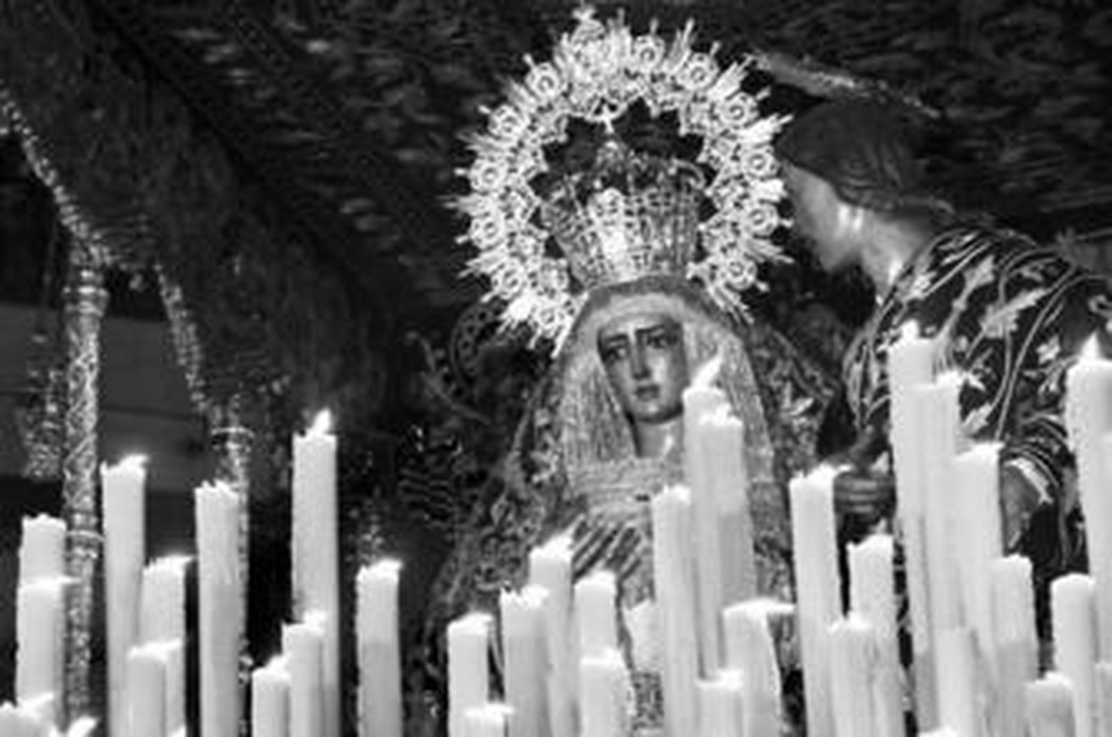 Fernando, Espe, José Luis, Javi, Pedro, Silvia, Antonio y Cristina, son un grupo de jóvenes discapacitados del centro Paz y Bien de Alcalá de Guadaíra que estaban invitados por la hermandad de la Bofetá para disfrutar la salida de la cofradía desde dentro de la parroquia de San Lorenzo. Están acompañados por Juan Manuel Fernández, director de la banda del Sol y uno de los psicólogos que trabajan con ellos, quien le iba explicando todos los detalles de la cofradía. Preguntaban mucho, sobre todo estaban muy interesados en saber cuánto pesaba el paso de la Virgen del Dulce Nombre. "Lo menos 1.700 kilos", les dijo Pepo, un costalero. Les debió parecer poco, puesto que más de uno se apuntó para el año que viene.