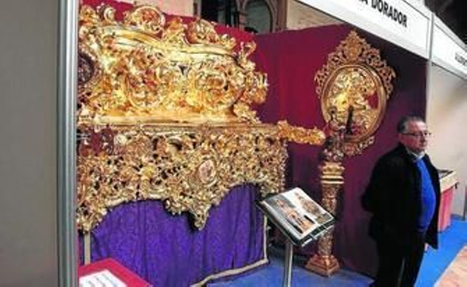 Miguel Santana, en su taller de dorado, ha restaurado por completo el canasto del paso de Nuestro Padre Jesús de las Penas de la Hermandad de San Roque. Un trabajo de dos años que será uno de los estrenos más esperados de esta Semana Santa sevillana y que se expone en la muestra. El respiradero delantero del paso de Nuestro Padre Jesús Cautivo, finalizado en 2012 por el taller de dorado Nuestra Señora del Carmen, se puede ver en el stand de esta empresa familiar.