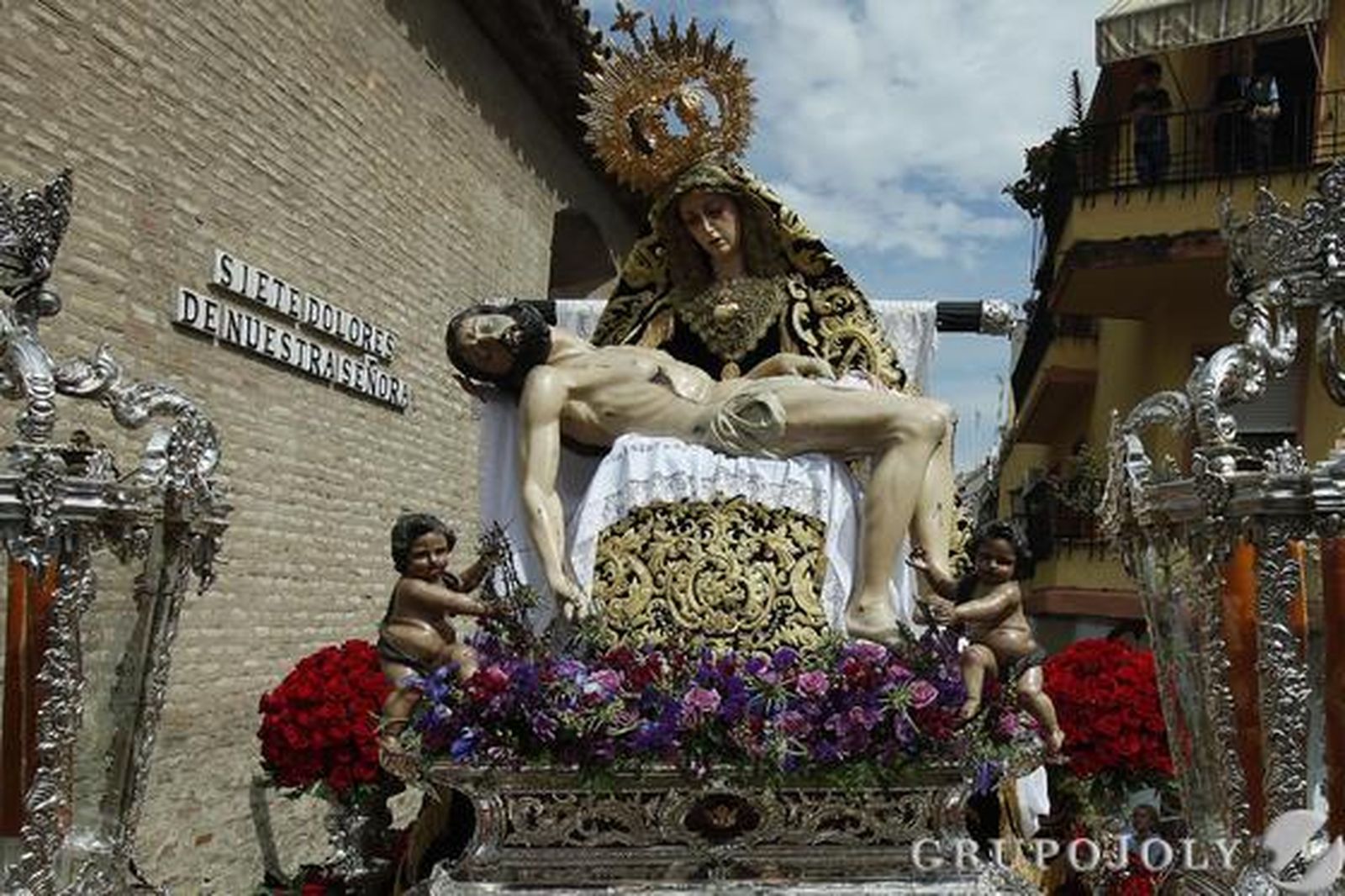 En las cafeterías del centro hay hueco más que suficiente en las barras. Se consumen las últimas torrijas. Aquéllas que se han quedado pegadas a la miel convertida en azúcar dorada. Aunque para endulzar los paladares, la cofradía servita, donde cualquier detalle ha pasado antes por el laboratorio del diseño. Hasta la escalera de aluminio que va tras el paso de la Virgen de la Soledad está forrada en terciopelo morada para cubrir los hirientes brillos de un material que chirría con la estética barroca.