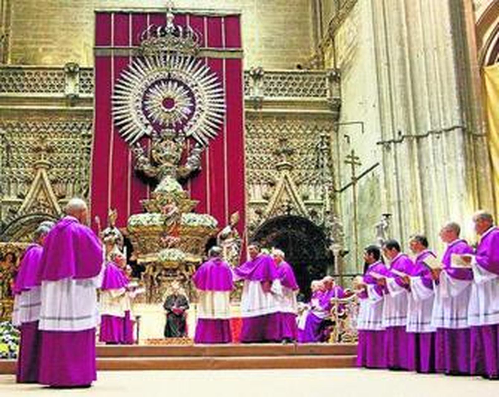 Los once nuevos canónigos de la Catedral de Sevilla juraron y tomaron posesión de manera oficial de sus cargos en una ceremonia jurídica presidida ayer por la mañana por el arzobispo, monseñor Juan José Asenjo. Los sacerdotes que han adoptado la canonjía son Ramón Díez de la Cortina Consuegra, Antonio Sayago García, Antonio Fernández Estévez, Eduardo Martín Clemens, José Lora Corento, Geraldino Pérez Chávez, José Luis García de la Mata Calvo, Antero Pascual Rodríguez, Manuel Sánchez Sánchez, Francisco Román Castro y Francisco José Ortiz Bernal. La ceremonia concluyó con el curioso rito de los canónigos lanzando monedas, una antigua tradición que simboliza el gozo y el deseo de compartir la alegría por el nombramiento con los asistentes.