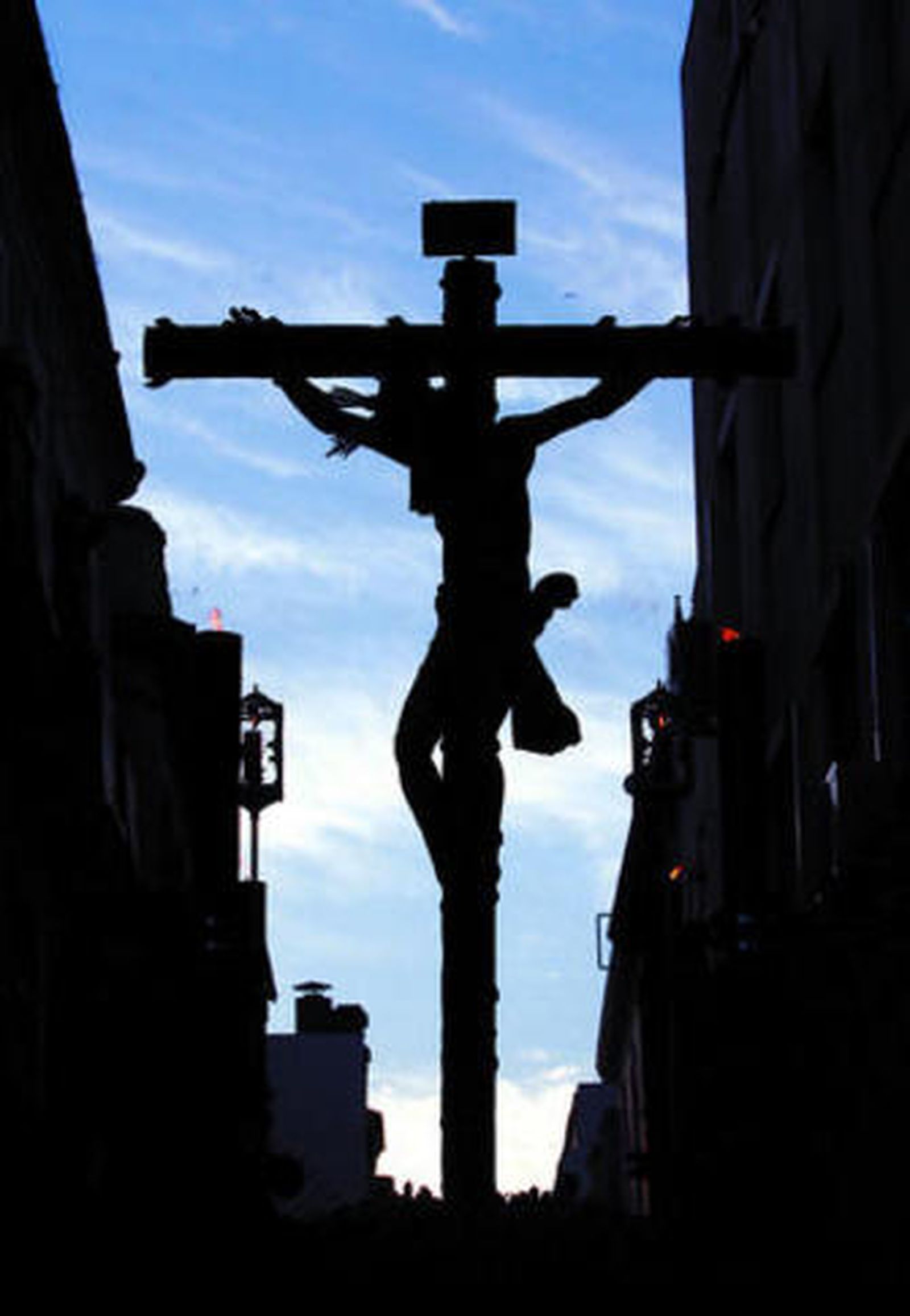 El silencio es absoluto en el entorno de la capilla del Dulce Nombre. Tras el Cristo, las túnicas negras dan paso a todo un abanico de colores. Capirotes grises, blancos y celestes que representan a distintas hermandades de la Vera-Cruz procedentes de otras ciudades.