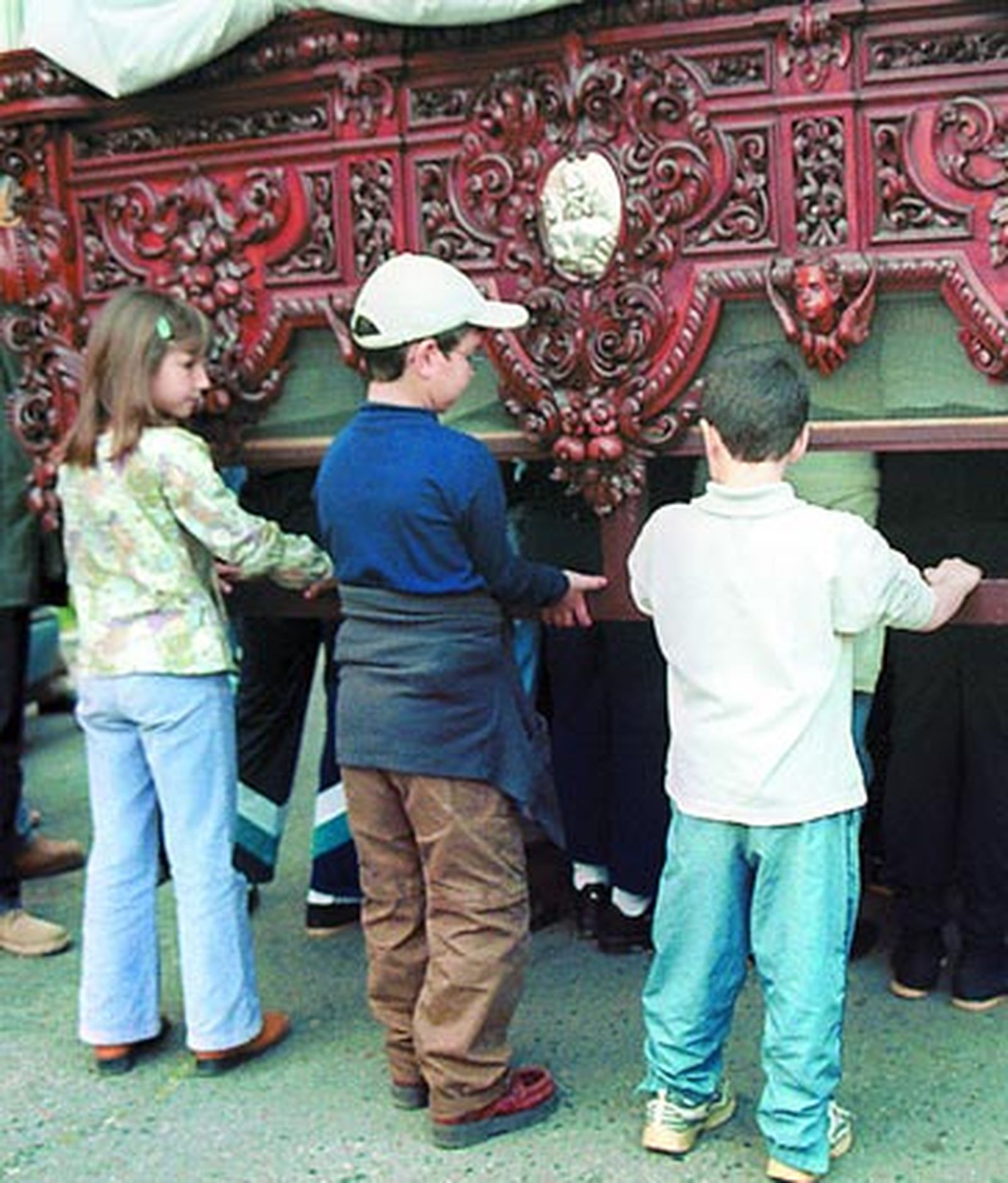 En un domingo cualquiera tres niños siguen los pasos de sus padres por unas calles de Sevilla.