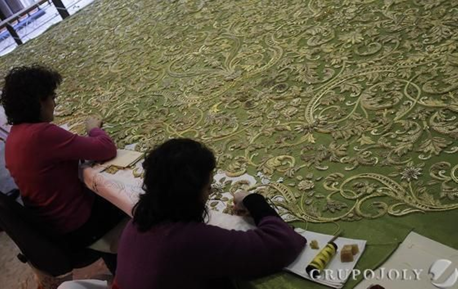 En el obrador doce mujeres se afanan en terminar la pieza. Uno de los responsables, Fernando Enríquez, explica la singularidad del manto. "Está muy bien ejecutado, tanto en la composición del diseño, como en su armonía o en la compensación de los espacios. Son tres las características que lo podría definir: la técnica empleada, el diseño y la riqueza de los bordados".