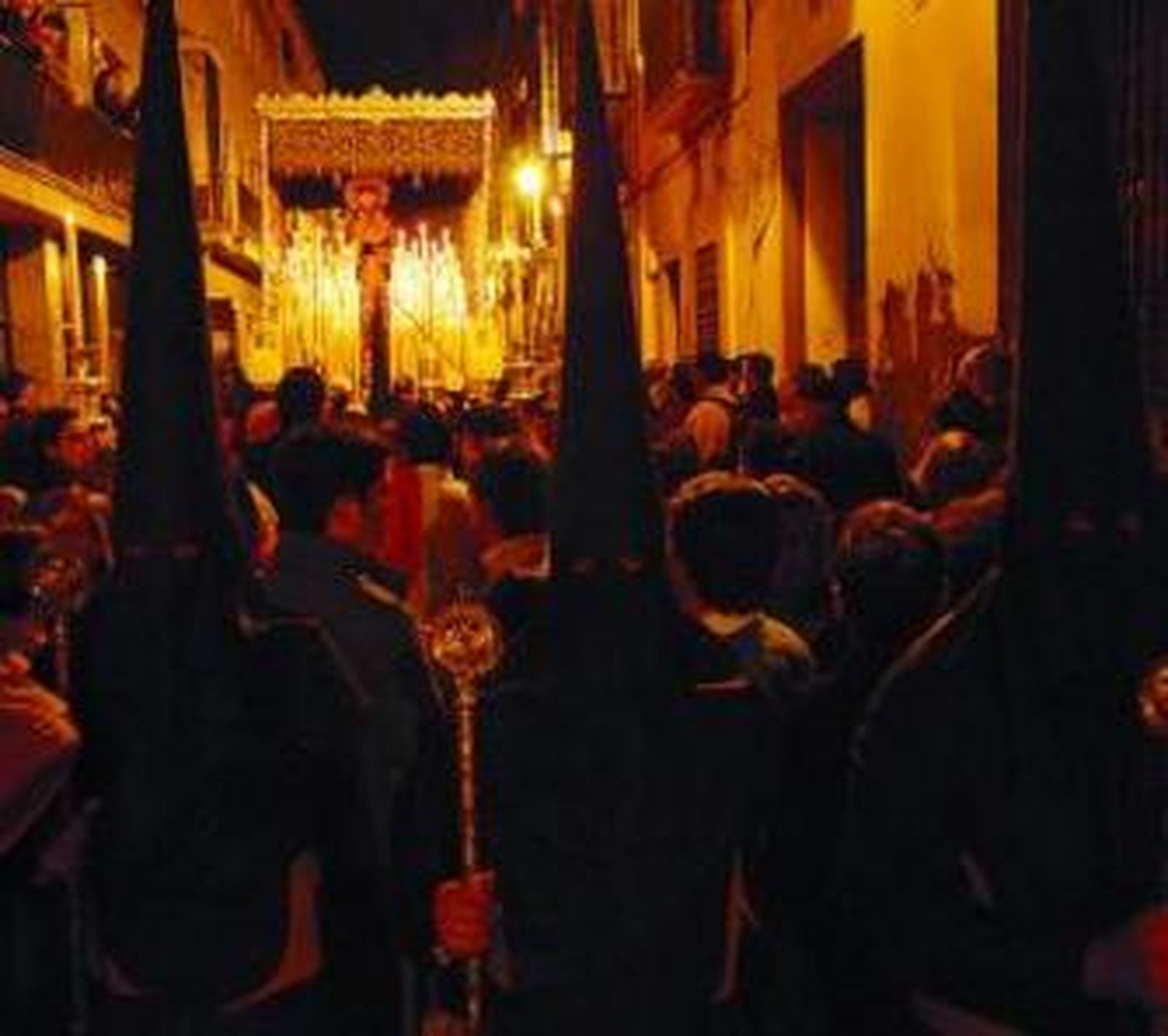 Mientras, en la puerta de la parroquia siguen saliendo nazarenos, ahora los penitentes descalzos que tanto llamaron la atención del niño. Casi cien monaguillos acompañan a los dos pasos de esta hermandad y allí andan todos en una algarabía que contrasta con la sobriedad del cortejo. "Te he visto en la tele", le dice un niño al otro mientras sale la Virgen de los Dolores.