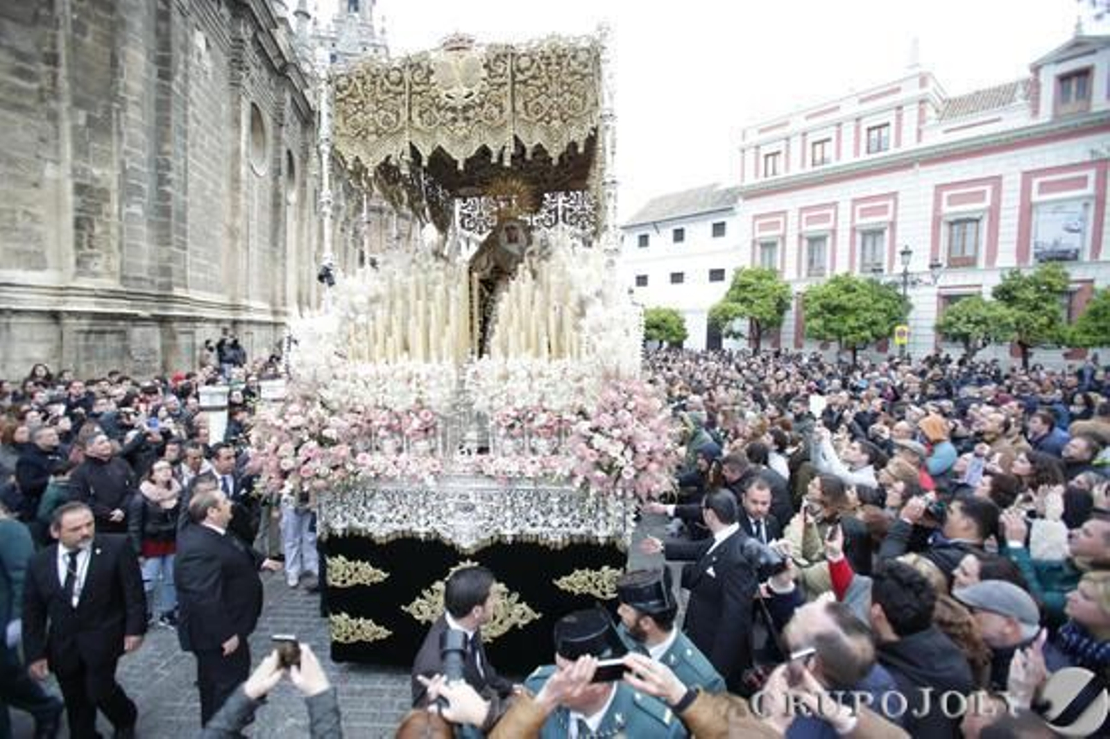 En cuanto a lo puramente cofradiero, la Madrugada fue sublime. Desde la Santa Cruz en Jerusalén al paso de palio de la Virgen de las Angustias, que fue el que cerró la jornada pasadas las dos y media de la tarde. A las dos entró la Esperanza Macarena y a las dos y cuarto la Esperanza de Triana. El frío, que hizo que muchas personas no salieran por la noche, posibilitó que fuera bastante cómodo moverse de un lugar a otro en busca de las cofradías. Todas las corporaciones exhibieron el sello característico imprimido por el peso de los siglos. Gustó mucho, muchísimo, el Señor del Gran Poder con la túnica de la "corona de espinas", una obra realizada en 1857 por Teresa del Castillo siguiendo un dibujo de su esposo, Antonio del Canto, y que se trata de la más antigua de las piezas bordadas del Señor que se conservan. Esta fantástica túnica completa iconográficamente la imagen de Juan de Mesa. Hay que agradecer a la hermandad que de manera excepcional el Señor luzca en la Madrugada alguna de sus fantásticas túnicas bordadas. Ya lo hizo en 2008, vistiendo entonces la túnica de los cardos.