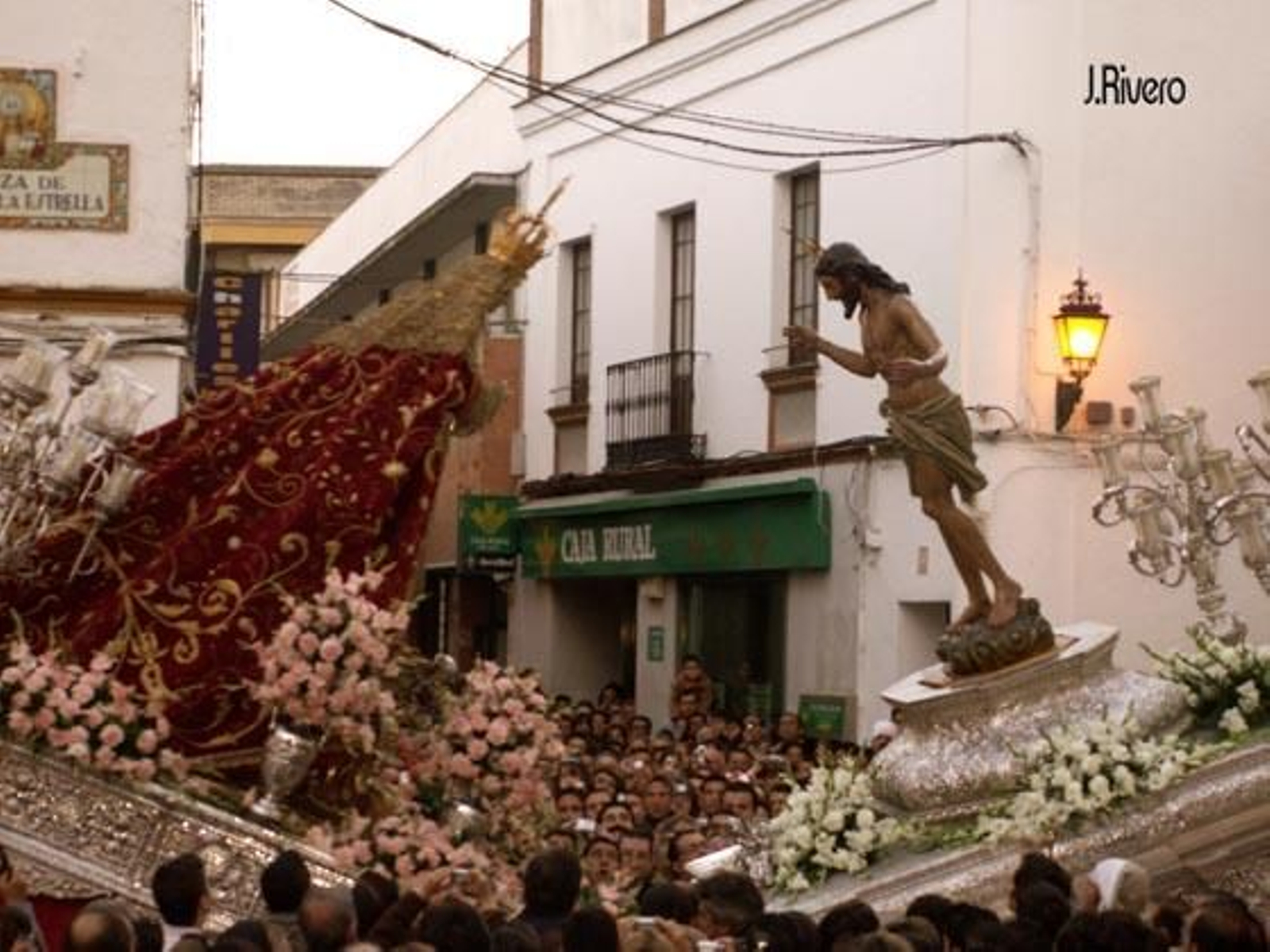 Los pasos del Resucitado y la Virgen de la Soledad adoptarán una postura casi vertical para saludarse en una tradición que cada año se repite el Domingo de Resurrección en la localidad ribereña