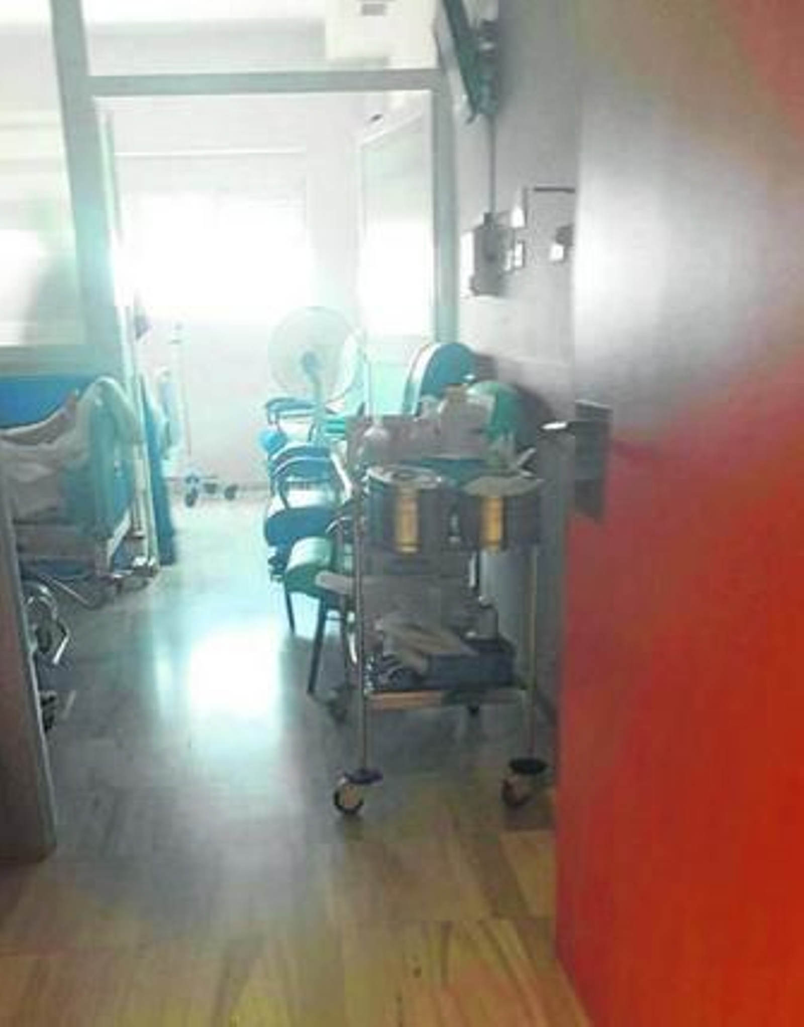 El calor aumenta a medida que se suben las escaleras. La sensación térmica en la zona de Medicina Interna, en la séptima planta, no dista de la que se vive bajo el sol en plena calle. Muchos familiares aguardan en el pasillo parapetados tras abanicos y provistos de botellas de agua para saciar su sed. Los usuarios recurren a los métodos más clásicos y rudimentarios para intentar, en vano, refrescarse. Desde las puertas abiertas de par en par en tres habitaciones contiguas se observan ventiladores en funcionamiento.