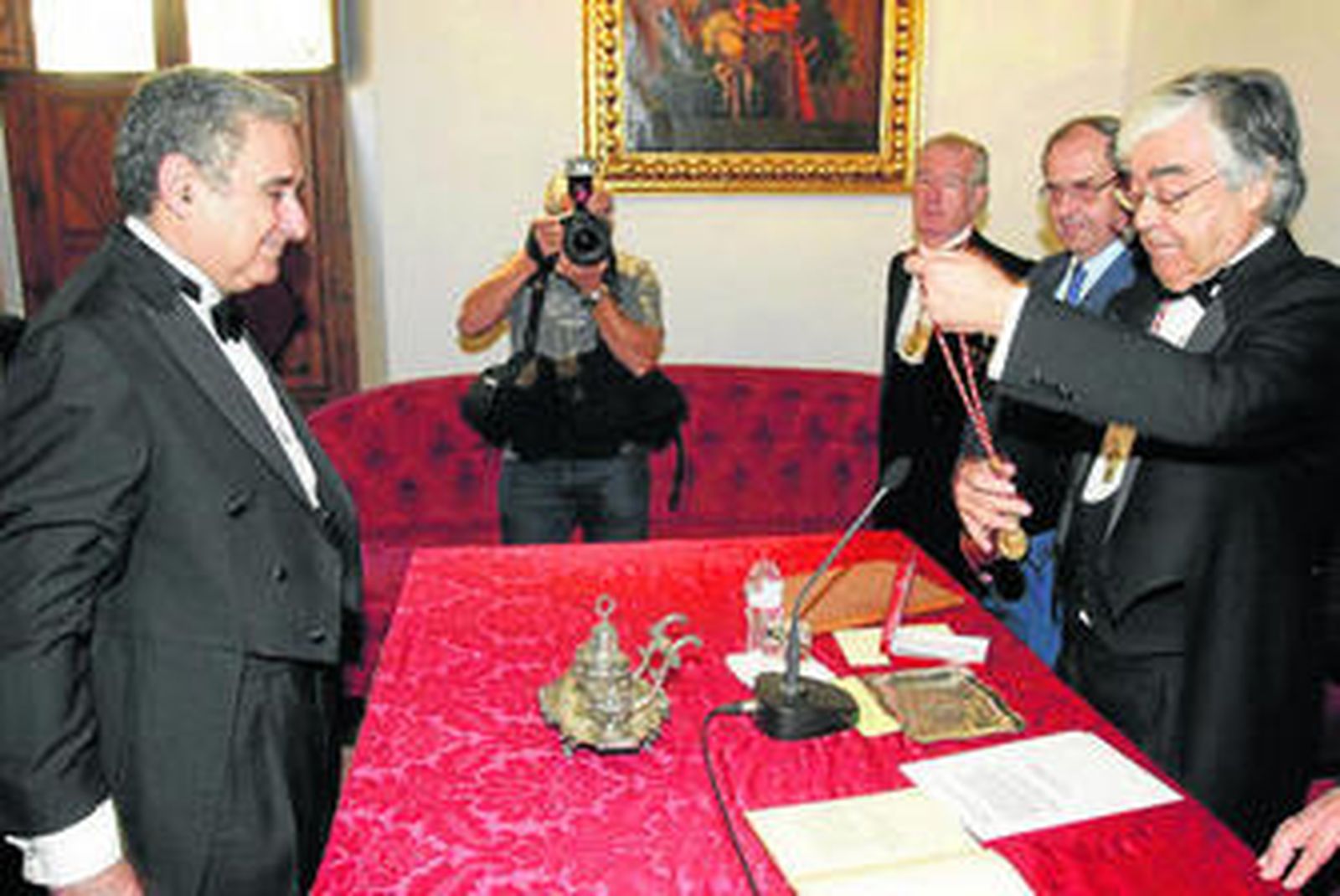 Fue un discurso de homenajes. A todos sus maestros, desde los que le enseñaron las primeras nociones en el colegio de Villafranca de los Barros, al propio García Gómez, al que evocó en alguna charla en el patio del hotel Alfonso XIII. Ocupa la plaza de académico que fue de Klaus Wagner, un sevillano centroeuropeo que dedicó su discurso de ingreso a la Biblioteca Colombina, ese arcano de tesoros tantas veces frecuentado por Ramón Carande, ayer representado por su nieta Rocío.