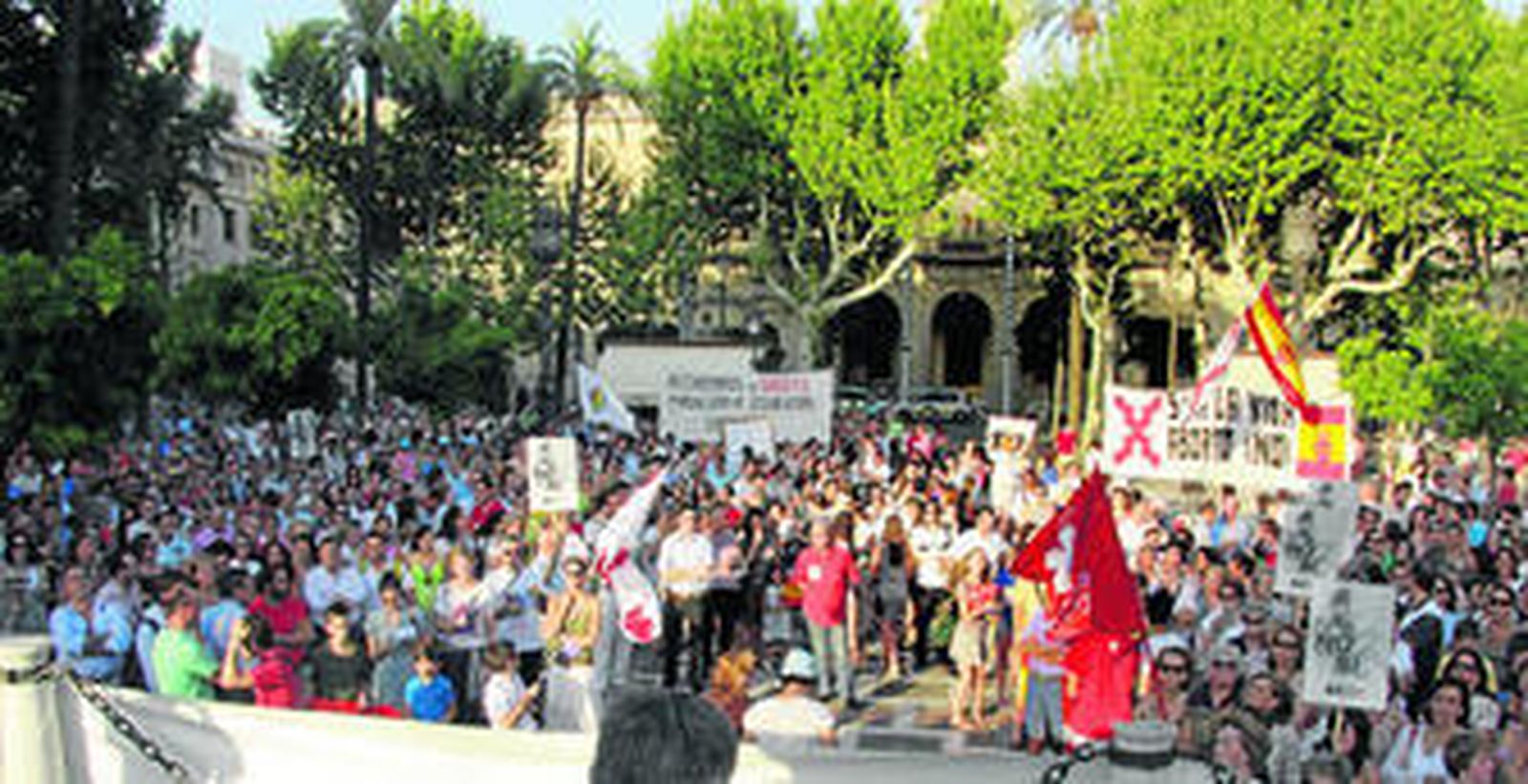 Cientos de sevillanos se manifestaron ayer en la Plaza Nueva para mostrar su rechazo a la ley, entre ellos, al menos una veintena de hermanos mayores