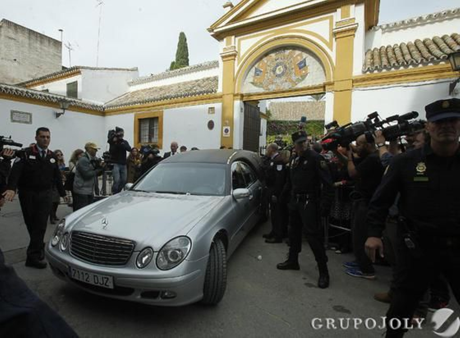 Público que rompió a aplaudir al salir a la calle el coche fúnebre que transportaba a la duquesa. Vítores de "grande, grande" y claveles blancos lanzados al techo del vehículo en ese momento en el que rara era la cadena de televisión que no mantenía la conexión en directo con este enclave. Detrás, la comitiva familiar integrada por seis vehículos con las ventanillas bajadas. En el primero de ellos viajaba el ya viudo Alfonso Díez. A su lado, Eugenia Martínez de Irujo, quien lloraba desconsoladamente, como también lo hacía Genoveva Casanova, la ex mujer de su hermano Cayetano, quien se quedó en el palacio en esos momentos. La duquesa de Alba dejaba para siempre su casa sevillana, la de los ecos machadianos, la que ha sido testigo de tantas visitas célebres, en la que delante de su puerta no dudo en ponerse a bailar con los pies descalzos al ritmo de sones flamencos para celebrar su tercer matrimonio, un enlace que le costó más de un disgusto familiar y con el que dejaba claro -por si quedaba alguna duda- que siempre viviría conforme a su más absoluta voluntad.