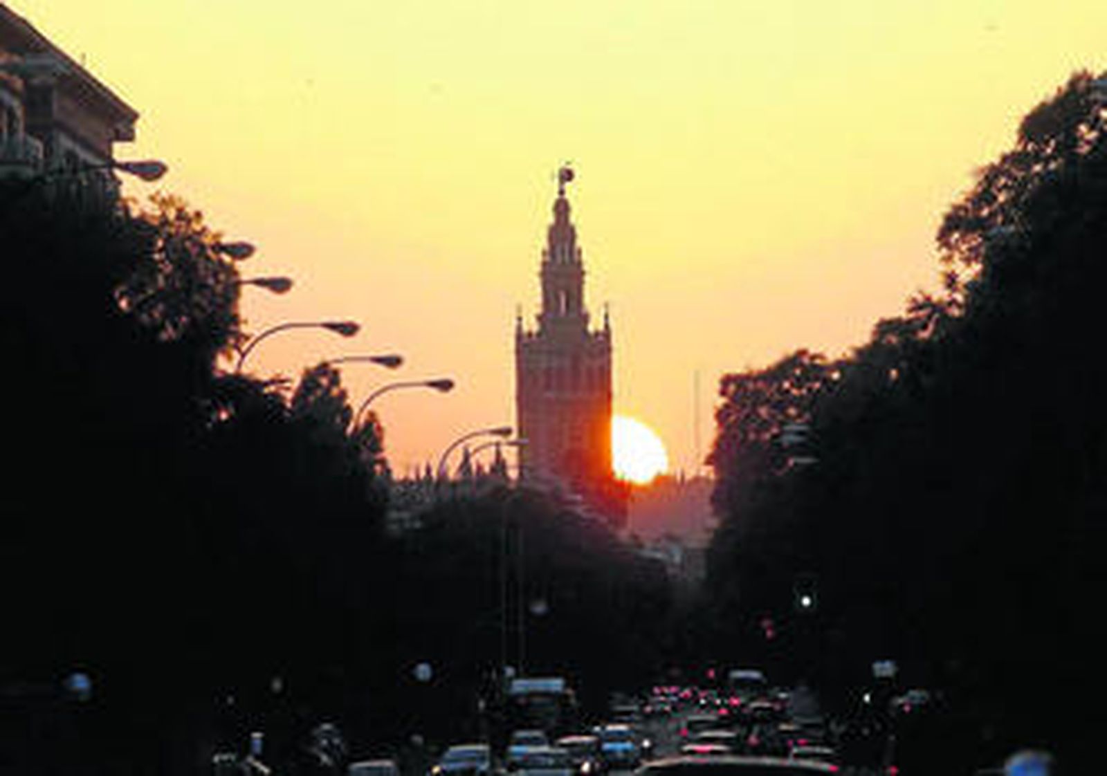 Con septiembre regresan los sufridos atascos y la vuelta a la rutina; sin embargo, también regala estampas como ésta del atardecer sevillano visto desde la Avenida Eduardo Dato. Una imagen onírica en el cielo frente al caos de la tierra.