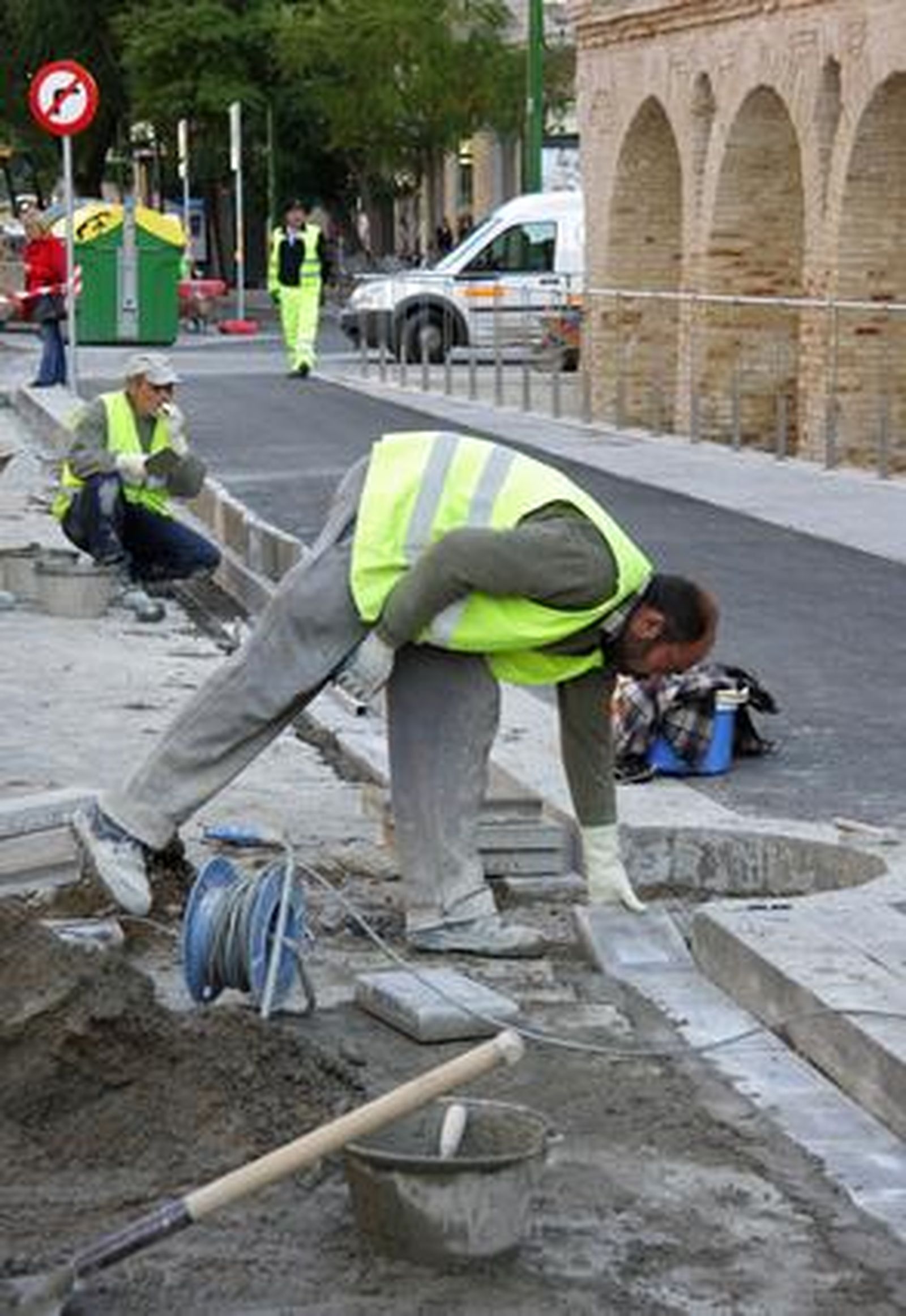 Para cumplir tal plazo, objetivo marcado por el Consistorio, los operarios aceleran los últimos trabajos, que este lunes se efectúan en el tramo de Luis Montoto más cercano a la avenida de la Buhaira, en los carriles de tráfico en dirección a la avenida de Andalucía.