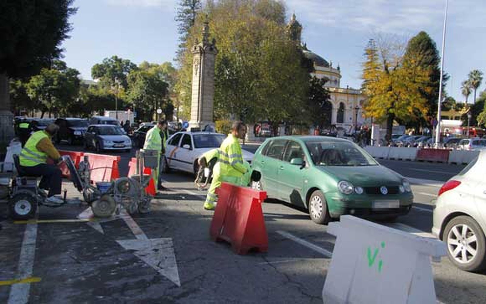 Esta actuación se ha realizado por partes, pues ha sido en torno a las 12:00 horas cuando los técnicos, en colaboración con la Policía Local, pusieron en funcionamiento el primer cuarto de la rotonda, que obligaba ya a los vehículos a hacer el recorrido circular para transitar desde la avenida de María Luisa hasta la avenida de Portugal. Posteriormente, se ha cortado el tráfico en línea recta desde Palos de la Frontera hacia avenida de Portugal, habilitando el resto de la glorieta.