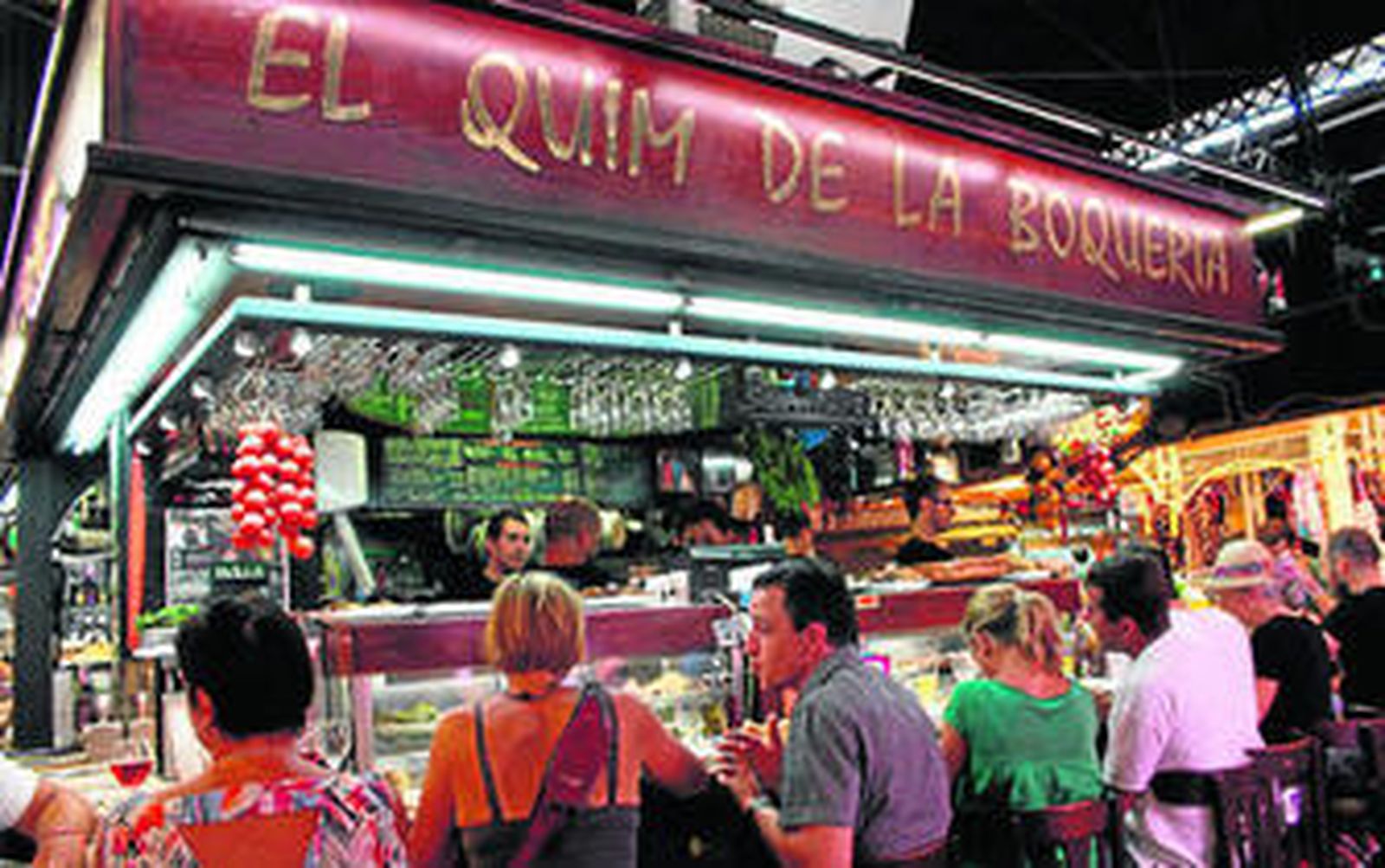 Mención especial merece en este mercado El Quim, un concepto de puesto-restaurante (dirigido por uno de los chefs de mayor prestigio de España) cuyo éxito después de 26 años le ha llevado a abrir un establecimiento en Hong Kong. La fama de sus platos congrega a numerosos turistas que todos los días aguardan colas para probarlos. Y todo empezó con tres metros de barra y cinco taburetes.