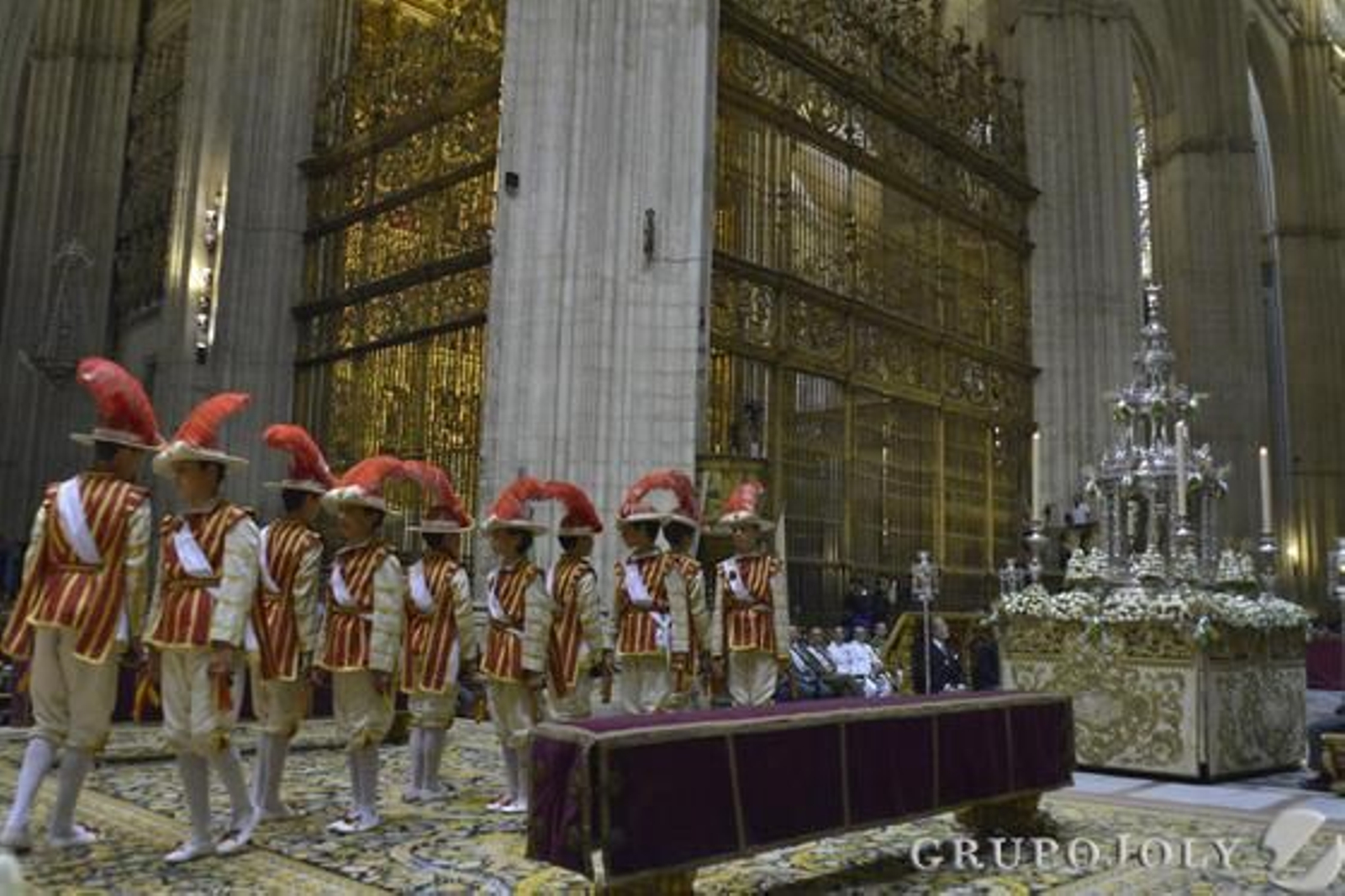 Como cada año, la empresa que se encarga del montaje de las sillas por adjudicación del Consejo de Cofradías, ha instalado casi 6.000 asientos durante todo el recorrido. Los precios no varían respecto a años anteriores y oscilarán entre los 10 y los 7 euros. A las 8:00, la Corporación ha partido desde el Ayuntamiento hacia la Catedral, con el acompañamiento de la Banda Sinfónica Municipal. La eucaristía presidida por el arzobispo, monseñor Asenjo, comenzó a las 8:30 en el Altar del Jubileo. A esa misma hora comenzó el cortejo a salir por la Avenida.