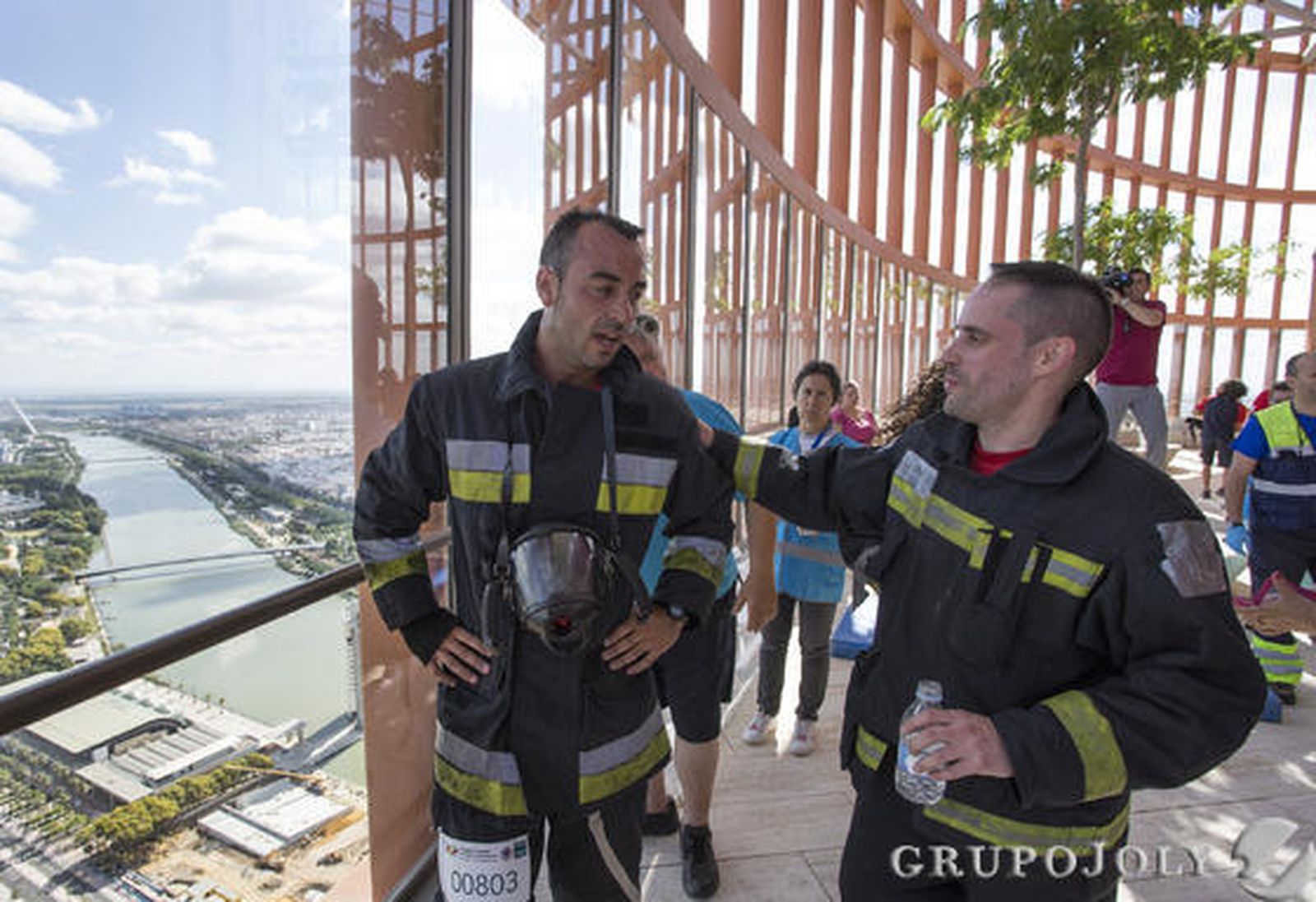 La Torre Sevilla fue este miércoles el escenario una cronoescalada deportiva que puso a bomberos de toda Europa, frente a los 180,5 metros del rascacielos más alto de Andalucía. La competición, que se enmarca en los VI Juegos Europeos de Policías y Bomberos 2016 de Huelva, se desarrolló bajo una gran expectación de curiosos y medios de comunicación por el debut de la Torre Sevilla en el campeonato. La cronoescalada, consistente en la subida de las 37 plantas de la Torre Sevilla, concentró a cerca de 70 bomberos procedentes de distintos lugares como Rusia, Francia, Canadá, Portugal, República Checa, Alemania o Israel. Los participantes compitieron en distintas modalidades: Open y Firefighter Full Gear.