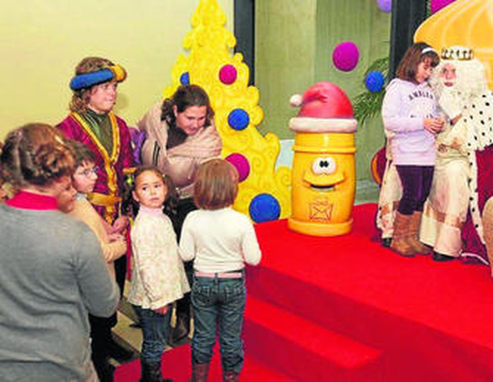 Las hermanas Desirée y Daniela y su prima Raquel fueron las primeras en entregar sus cartas al monarca llegado de Oriente. "Con letra clara, Daniela, y en mayúsculas", le decía su madre. Detrás de ellas, Francisco Javier, 3 años, pertrechado de un zumo de manzana y un paquete de galletas Oreo con las que se tiznó la cara como un baltasar infantil que emergiera de una caravana de las mil y una noches trasladado en alfombra mágica por Simbad el Marino. O por Popeye.
