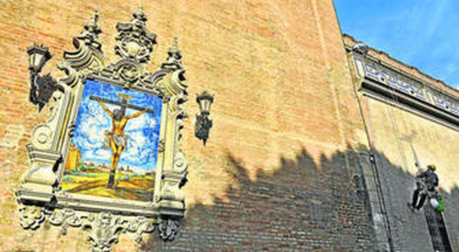 Quienes paseen estos días por la Plaza de la Encarnación podrán ver a varios operarios colgados del muro lateral y la fachada principal de la Iglesia de la Anunciación, que en su día fue sede la institución universitaria y actual de la Hermandad del Valle. Muchos -con la psicosis cofradiera propia de la cuaresma- han llegado a pensar, incluso, que se traba de una intervención de urgencia por algún mal que presentara el templo. Temor infundado. Sólo se trata de labores de mantenimiento. Así lo confirmaron este miércoles a este periódico fuentes de la Hispalense, que explicaron que estos trabajos son rutinarios y se incluyen dentro de un presupuesto destinado a la conservación del patrimonio inmobiliario de la universidad, al que pertenece este edificio.