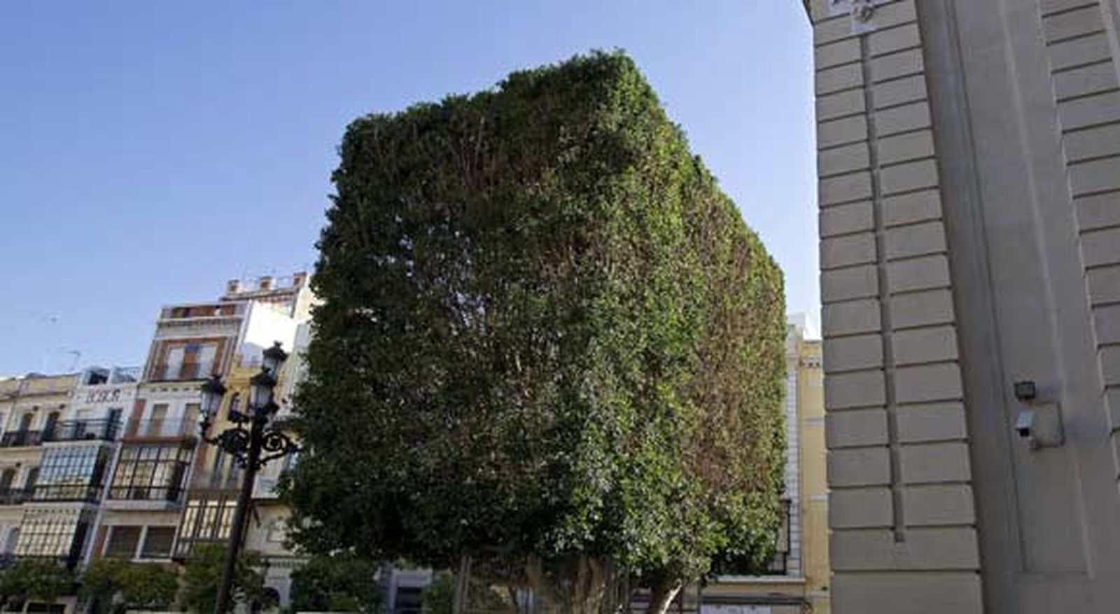 Los dos laureles de Indias -árboles tropicales de hoja perenne y copa gigantesca y muy tupida- situados en la céntrica plaza sevillana de San Francisco han sido podados de manera "salvaje, insensible y aberrante", según la Plataforma Ciudadana por los Parques, Jardines y el Paisaje de Sevilla. Los árboles, cuya copa se extiende de manera circular y a considerable altura, han sido podados con forma geométrica de cubo, como se hace con algunos setos, para lo cual los podadores han tenido que entrar bastante en la copa y cortar algunas ramas de anchura considerable, según los denunciantes.