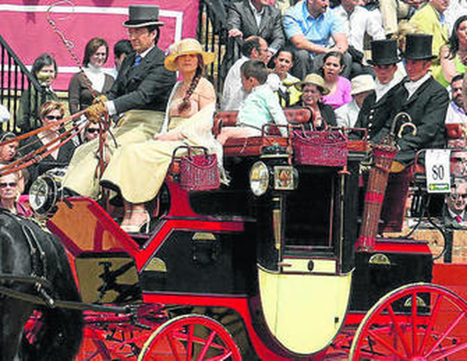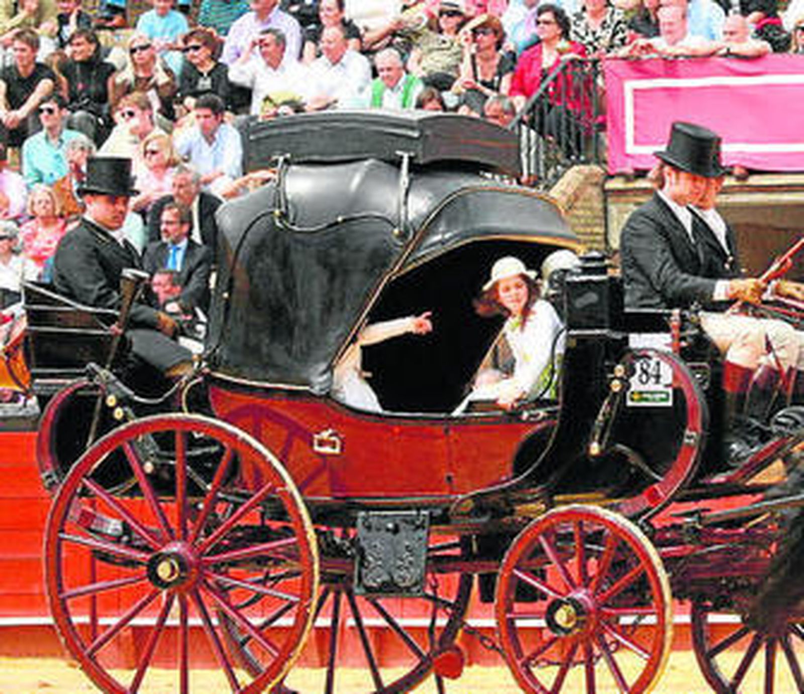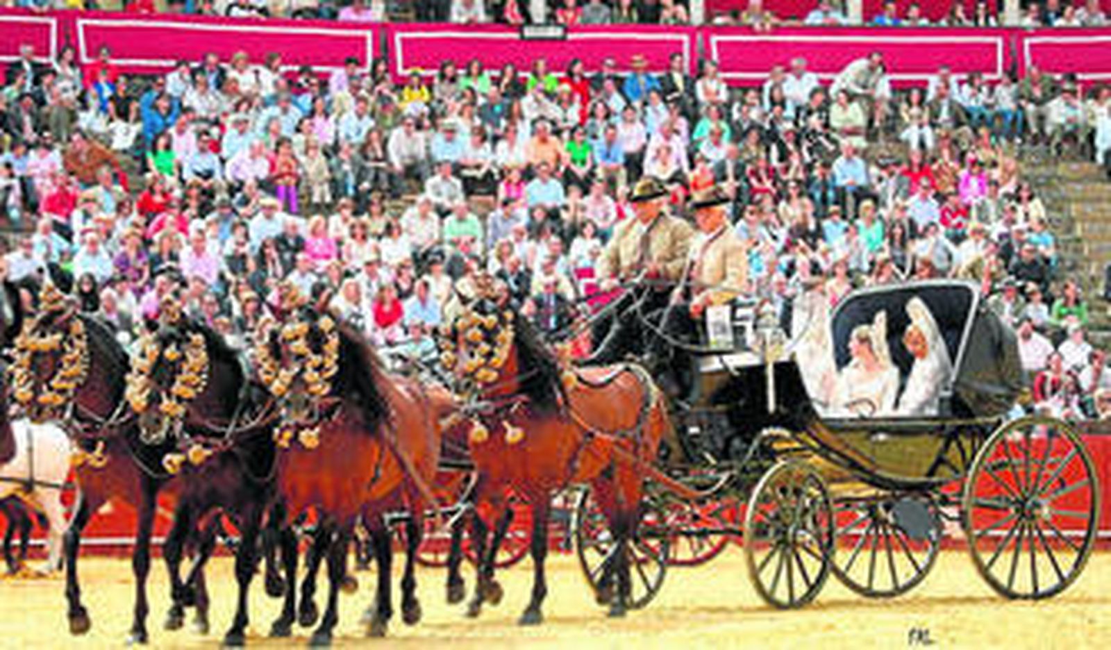 Lucirán con todo su esplendor las mantillas blancas (para las que habrá premio) y no faltarán a la cita sus grandes clásicos. Además de la duquesa de Alba, madrina de esta edición, que entrará en la plaza en un sociable de la ganadera Rocío de la Cámara, la ganadería de Gregorio Aranda (uno de los mayores coleccionistas de España, con unos 200 carruajes) o la yeguada Hacienda María volverán a la exhibición. Tampoco faltarán sus seguidores y participantes más fieles, como el ganadero Fermín Bohórquez y su hermana Ana María, así como Emilio García Navarro, ganadero que presenta uno de los enganches más espectaculares.